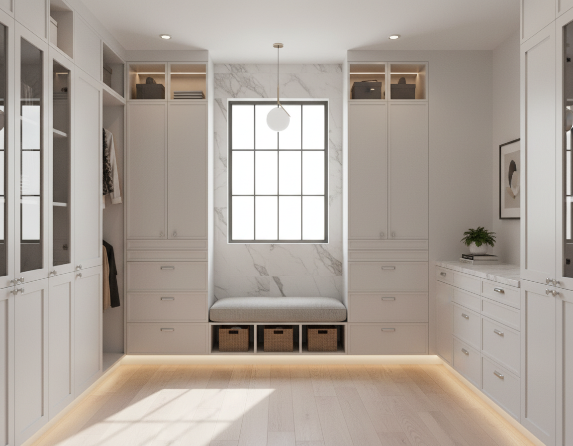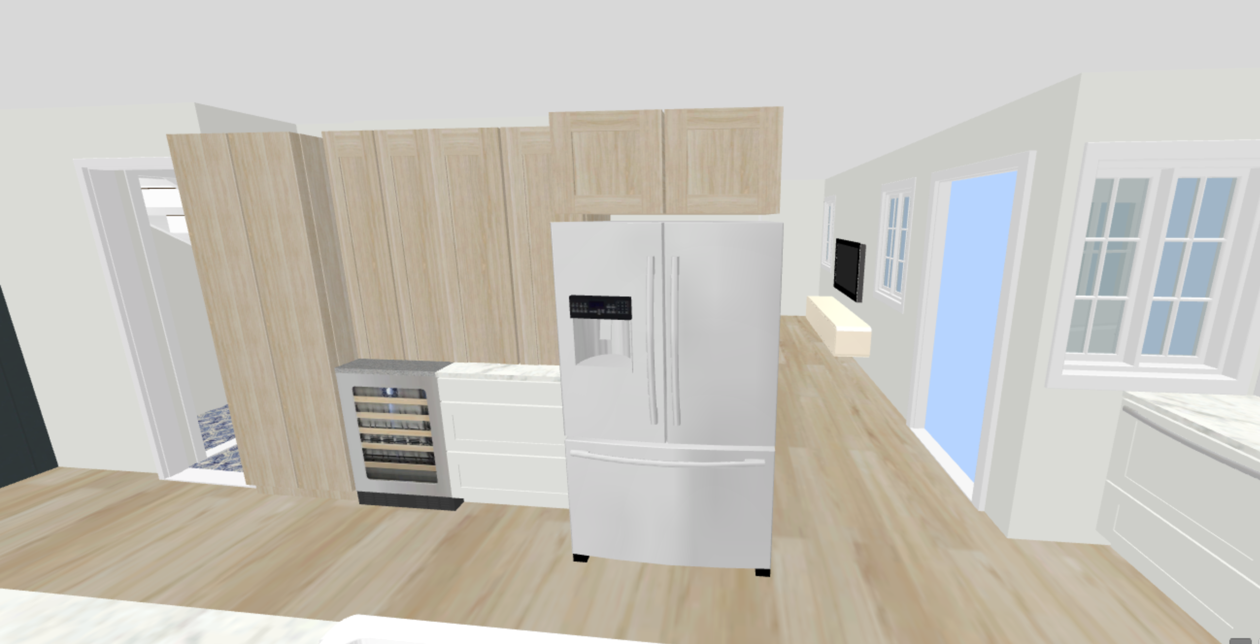 please make the image more crisp and add brass knobs to the cabinets