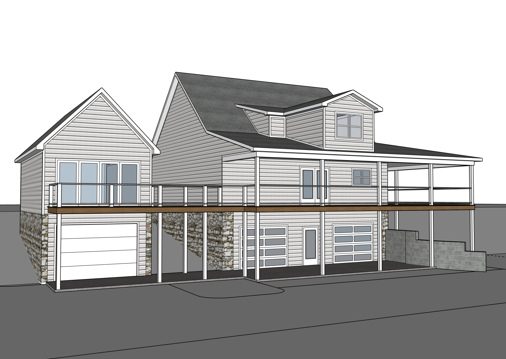 wooded lot outside of windows make realistic add gravel parking area in front of patio add landscaping