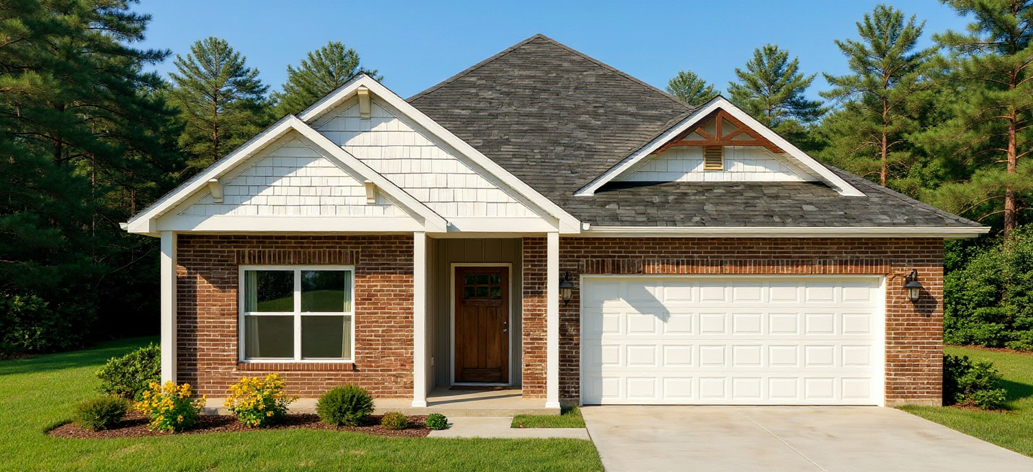 modernist exterior shot on the front elevation reduce the brick to just a 3 tall wainscott and add siding architecture