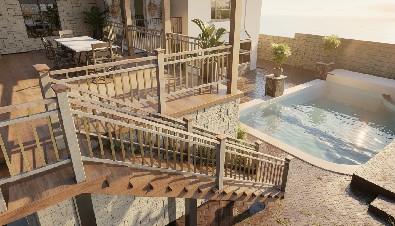 bring lawn up to level of deck so there is no step down remove the trees in the foreground