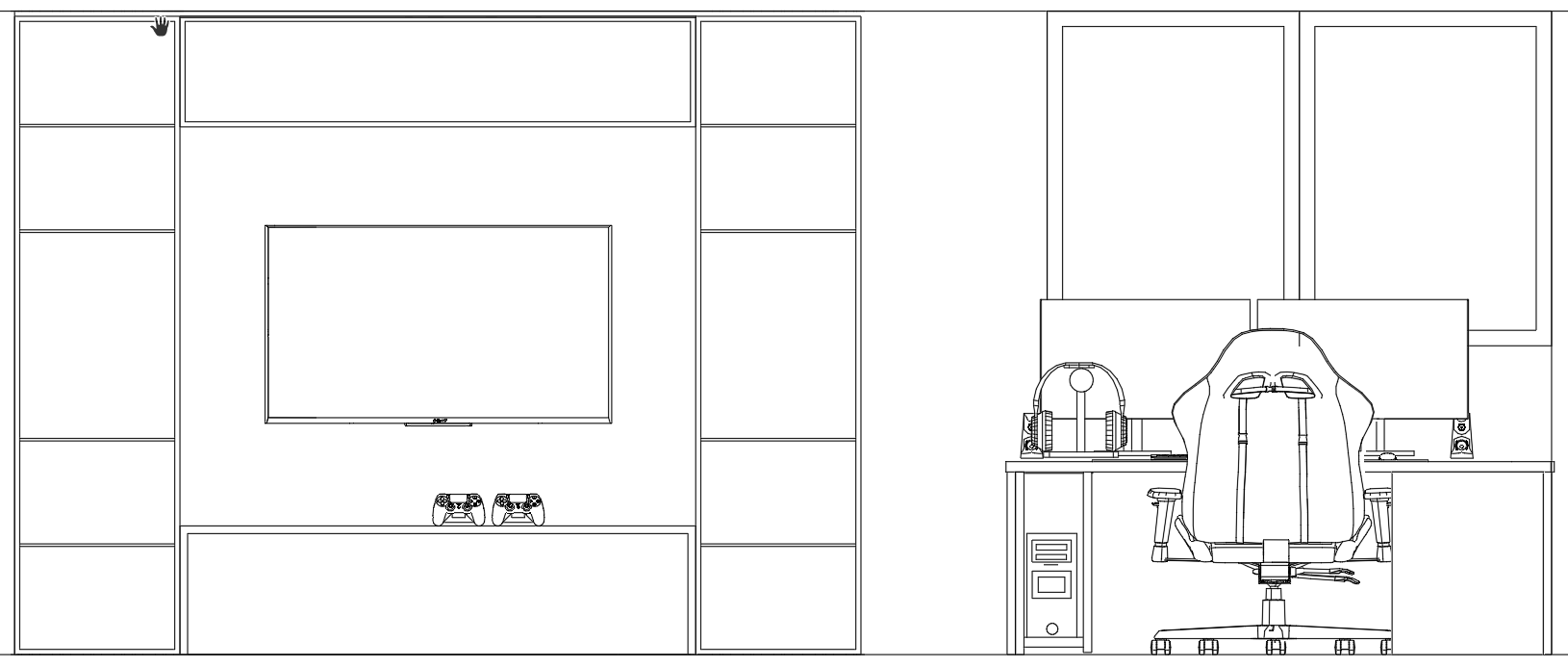 exterior shot right top windows with black curtains futuristic gaming room design blue led lights glass lego diplay unit full carpet floor futuristic metal and glass tv unit man cave desing be creative ai magenta led on ceiling blue lights leds all extra realistic render l shape desk lacqeur no glass