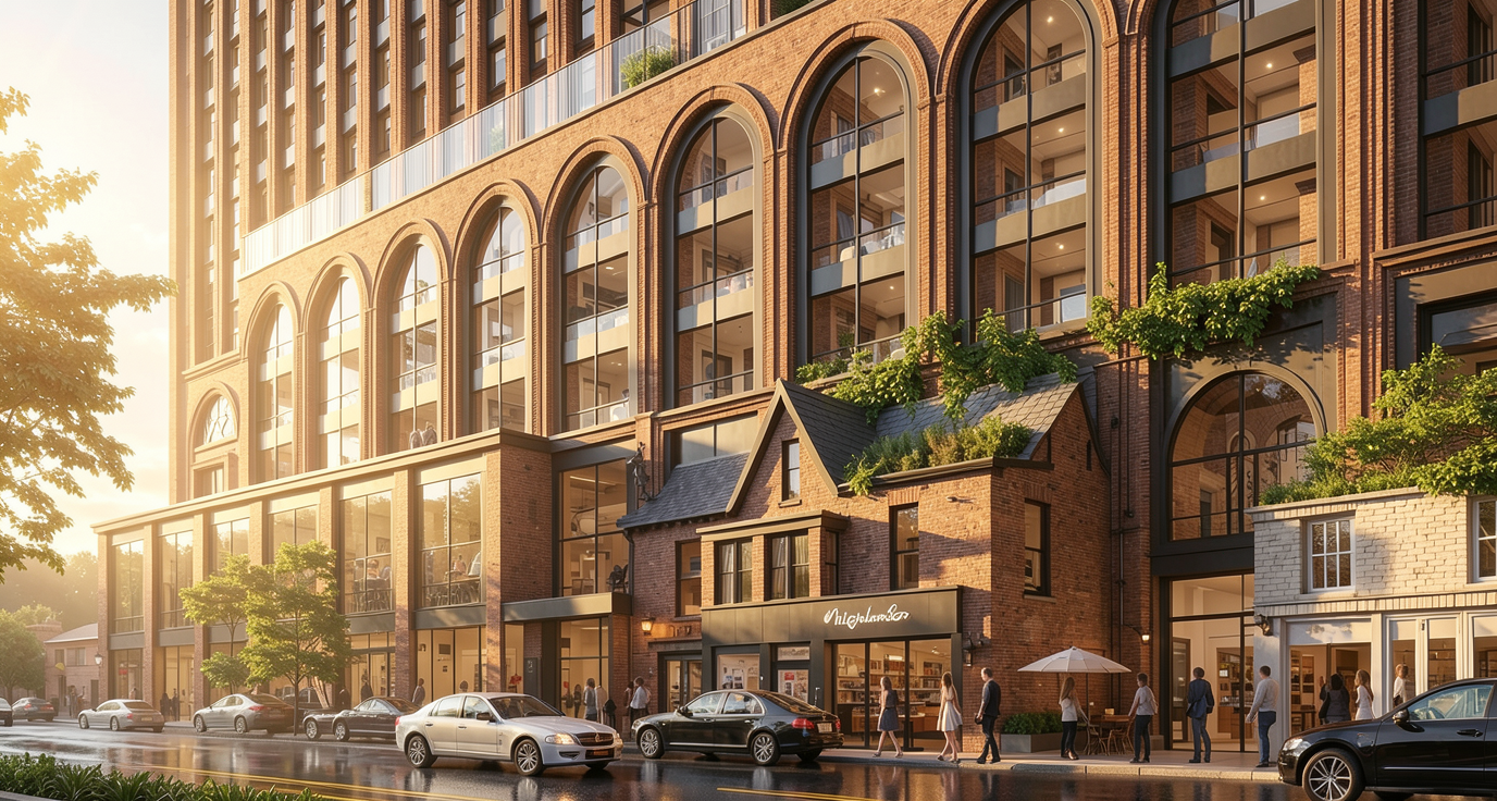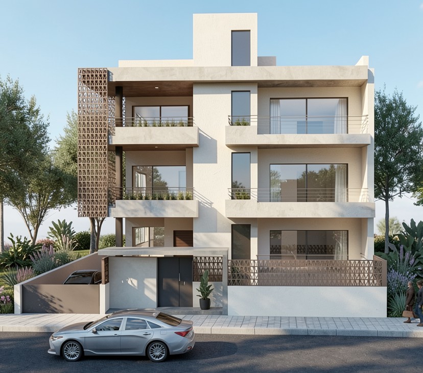 keep everything remove the car and add one man at the road and one women at a balcony