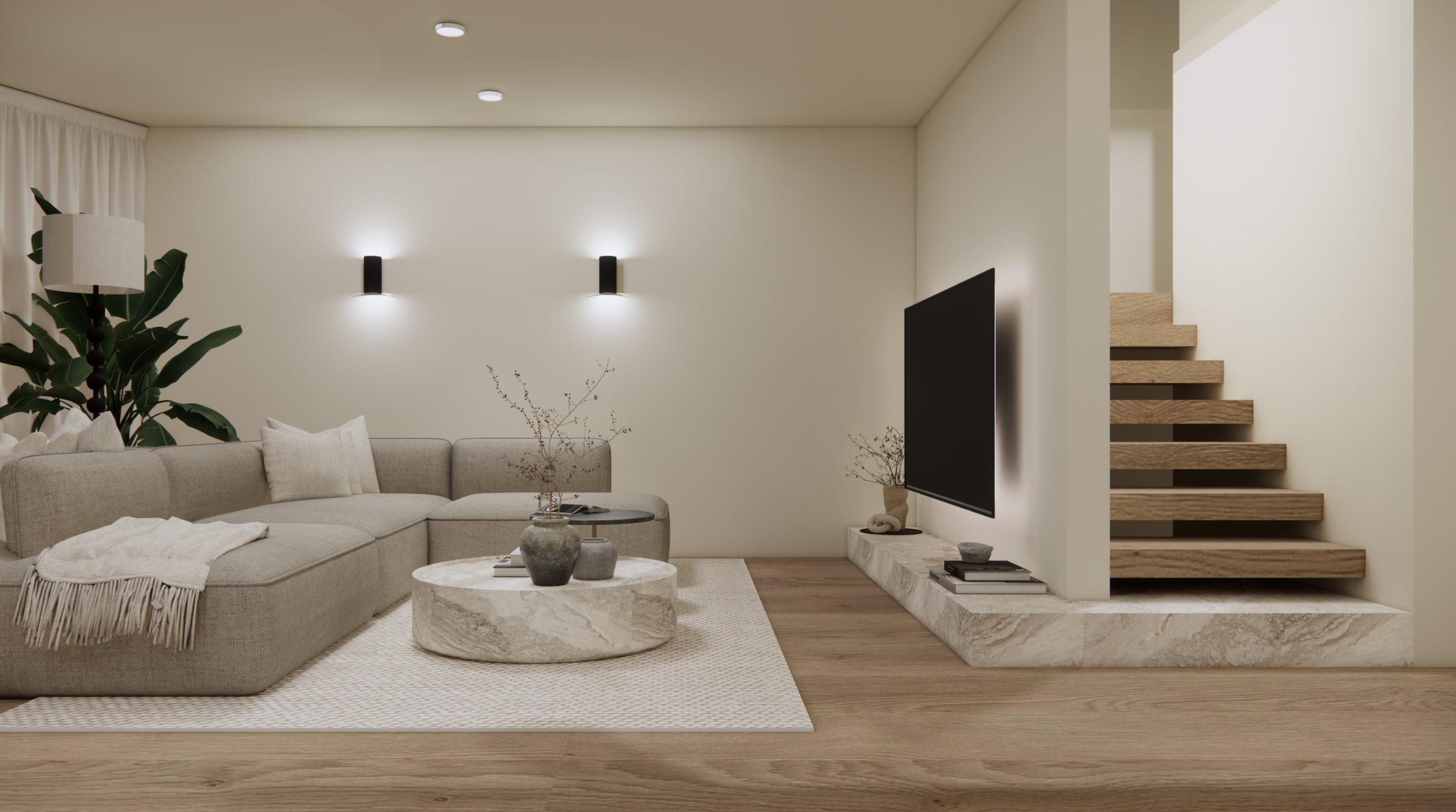 make it photo realistic and better quality keep everything exactly as it is from the design natural beautiful daylight no shadow on the wall from the lamp