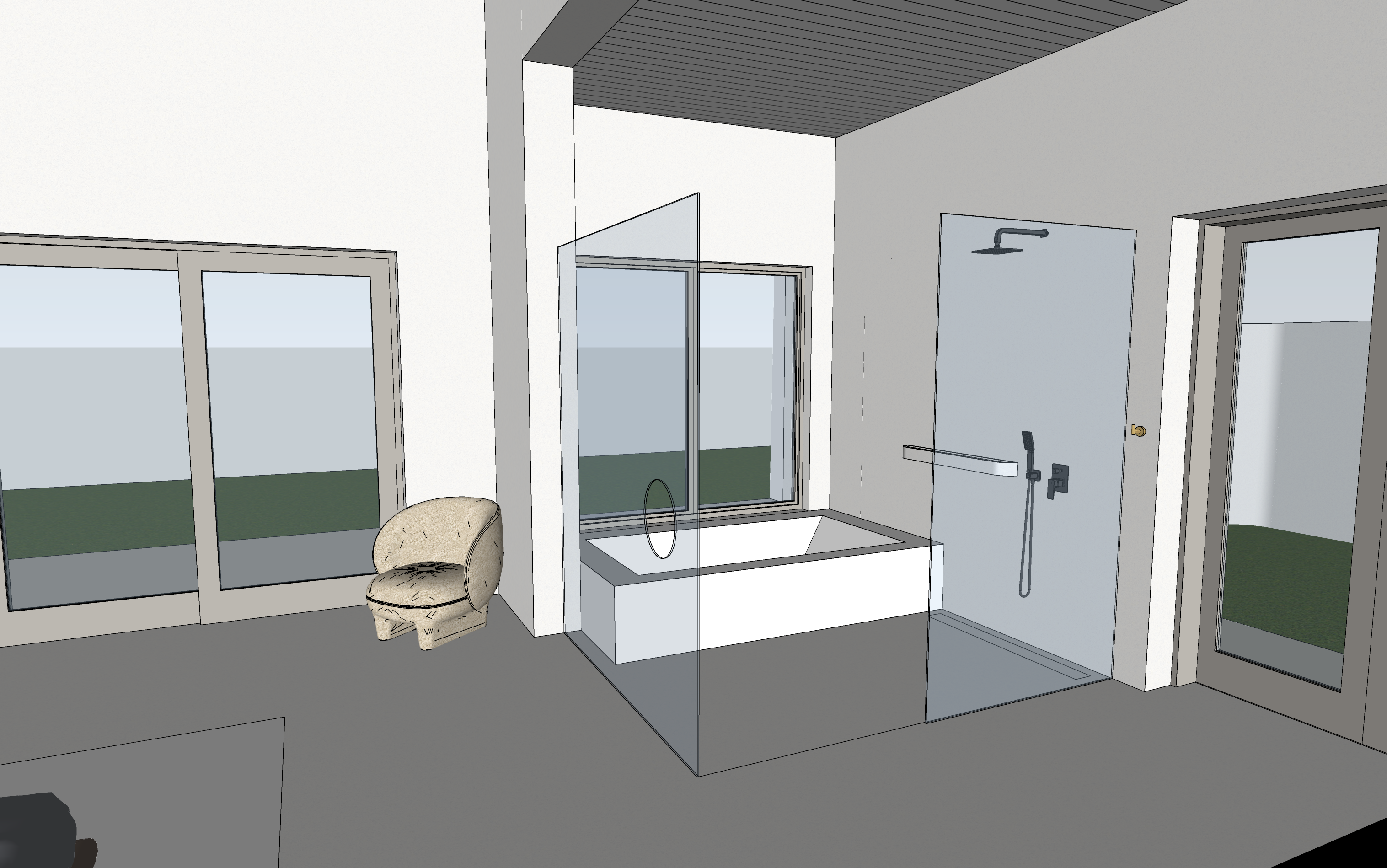 sunrise to left beach view moody lighting screed flooring bushy garden to the right no wood