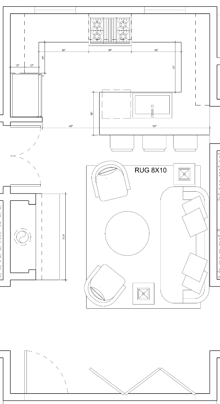 convert this floor plan into a realistic isometric 3d view of a full house show the space from an elevated angle with furniture walls and details visible convert this floor plan into a realistic isometric 3d view of a full house show the space from an elevated angle with furniture walls and details visible living room and kitchen isometric with warm oak tones and creams and beiges with some light blues thrown in via the pale rug and couch fireplace across from couch made of marble with modern minimalist oak mantle two windows on either side of the stove with the hood above the stove white to match walls with oak slab trim at base of hood use the same furniture as shows on the plan do not change the orientation of the floorplan upper cabinets in kitchen should be only on the left and right walls not on the window wall use the same furniture as shows on the plan do not change the orientation of the floorplan