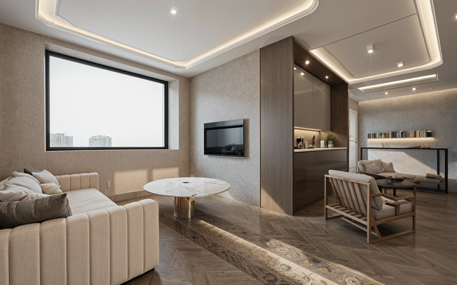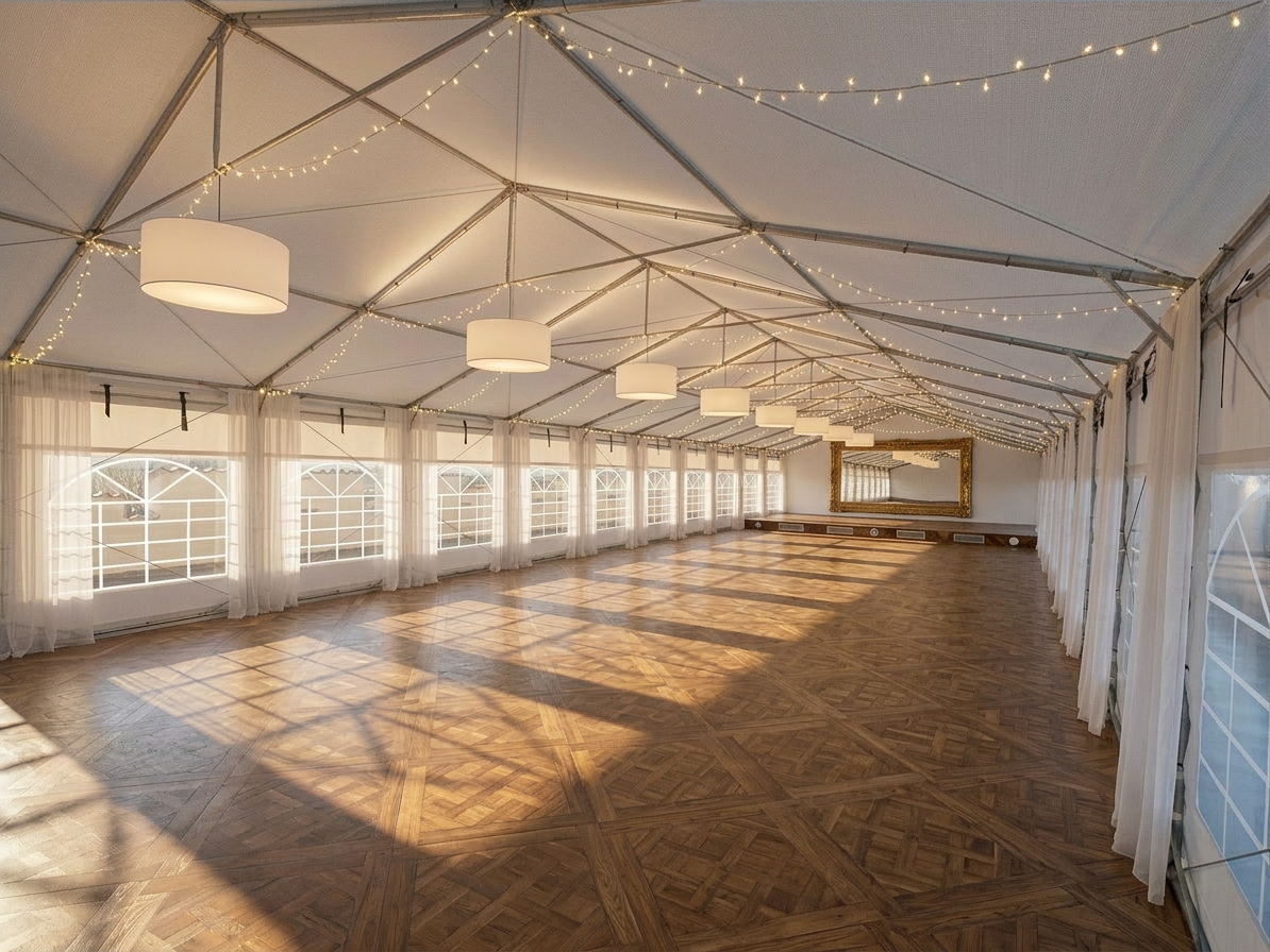 curtains all along side walls paint wall in back to light capuccino add more light chains