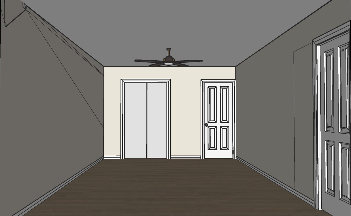 floor is a walnut luxury vinyl plank the walls are revere pewter and closet doors are mirror slab