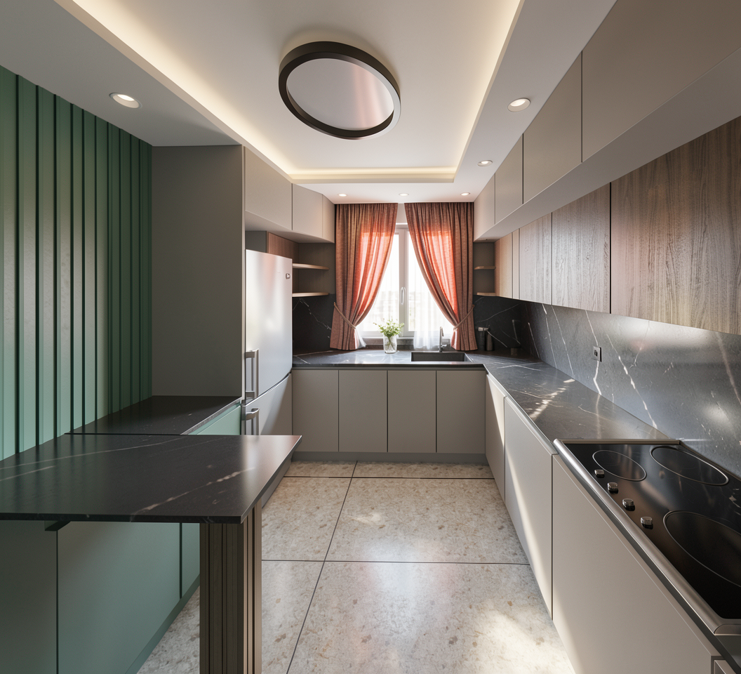 do not change the geometry and colors and materials put rome blinds to the window and the ring on the roof to be lighted