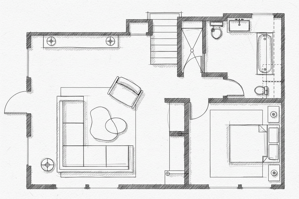 make this floorplan feel sketchy architectural and hand drawn don t change any of the details of the rooms