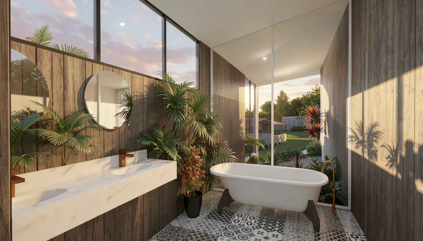 make all the window frames black make the bath more modern