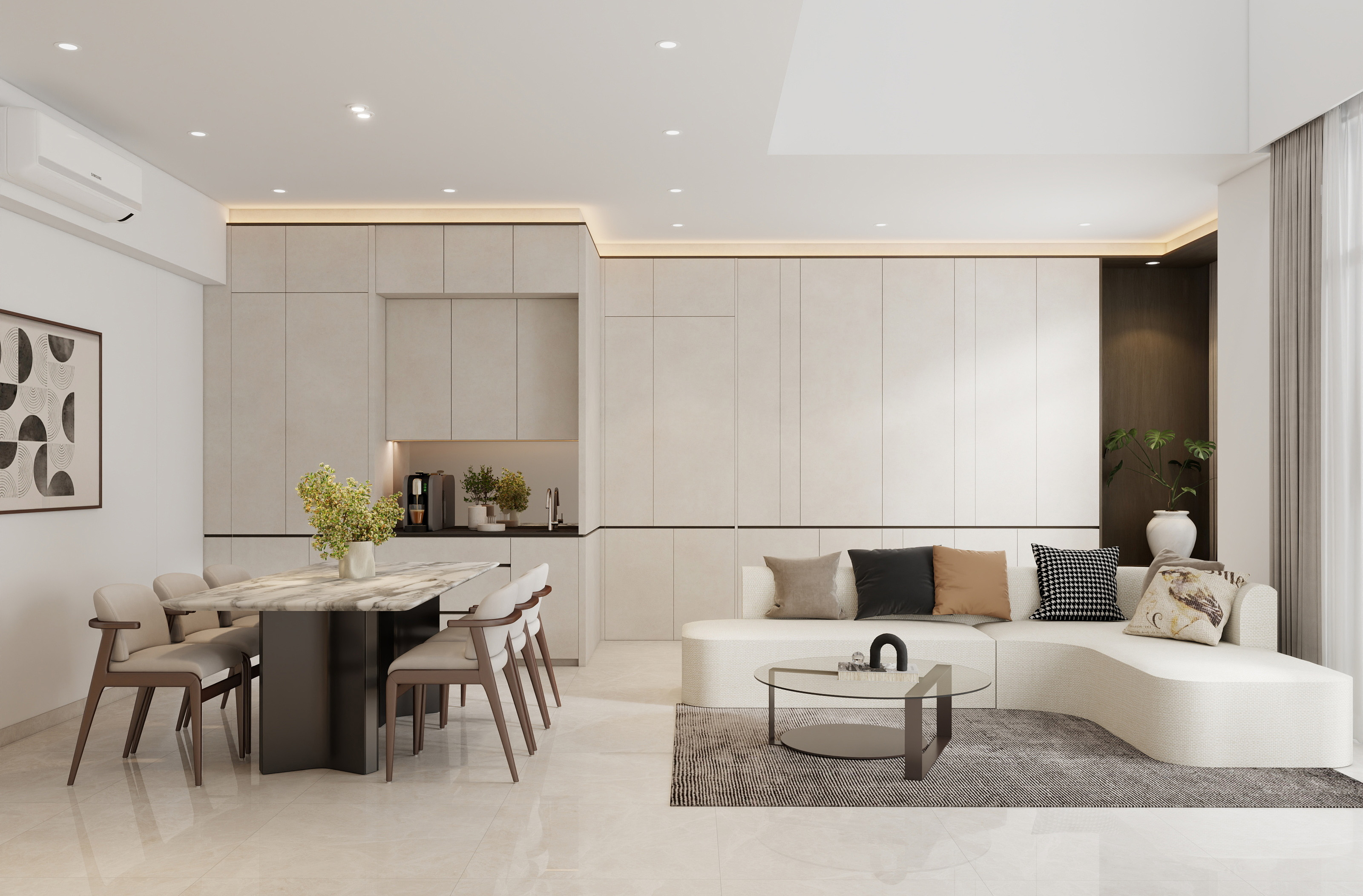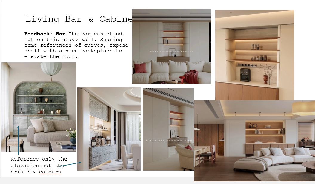 exterior shot give me a revised image from the above based on the moodboard reference attached the bar can stand out and want some contrast between the bar cabinets and the entire back row of cabinets on the right side overall to be very classy and elegant and look spacious