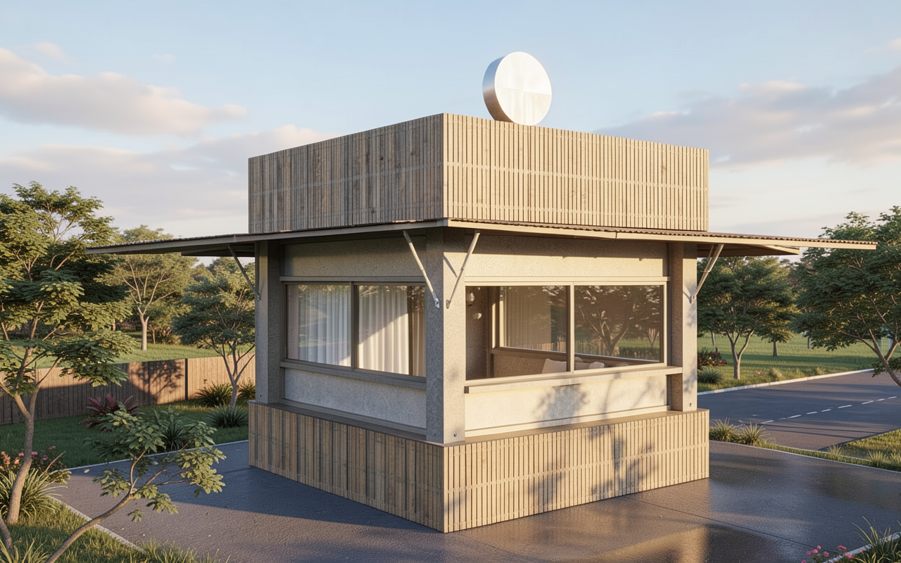 add the following vehicles parked in front of the building in front of middle 5 windows red pickup truck green camry white suv silver suv