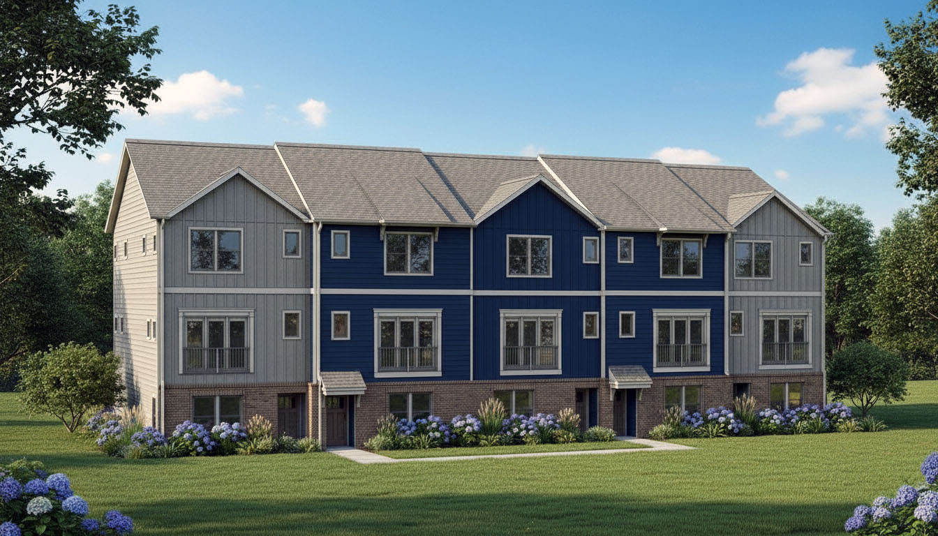 there are 5 entry doors show a sidewalk going to each entry door