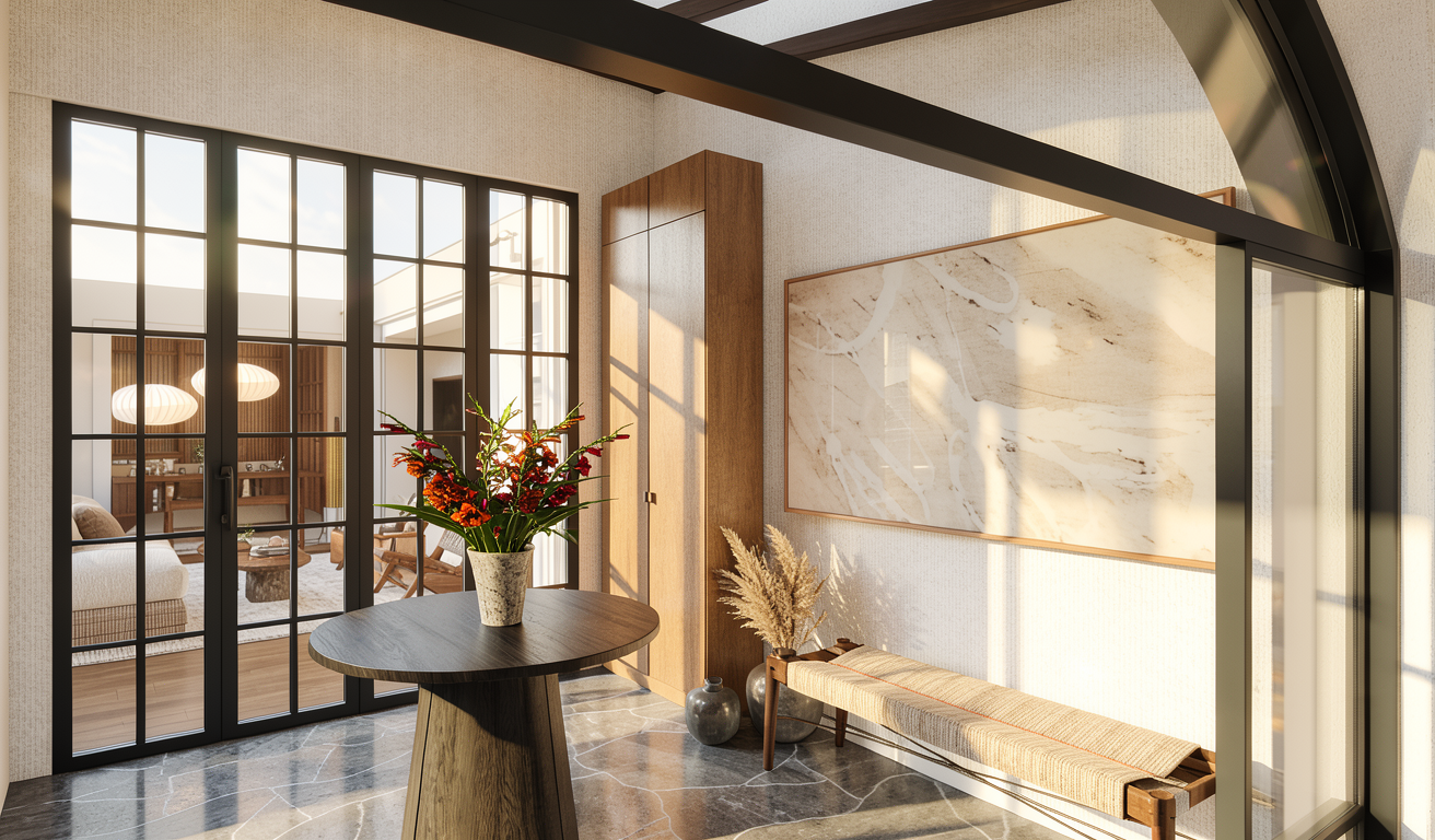 ne pas modifier le meuble sous vasque et mettre dans la niche des serviettes de toilettes eclairer l applique murale rendre la pi ce plus lumineuse avec de la lumi re naturelle qui vient de la verri re droite derri re la verri re il y une chambre avec un mur vert celadon pas l ext rieur commes les pr c dents rendus le carrelage vert de la douche est plus brillant dans la chambre on ne voit pas de fen tre teindre le miroir