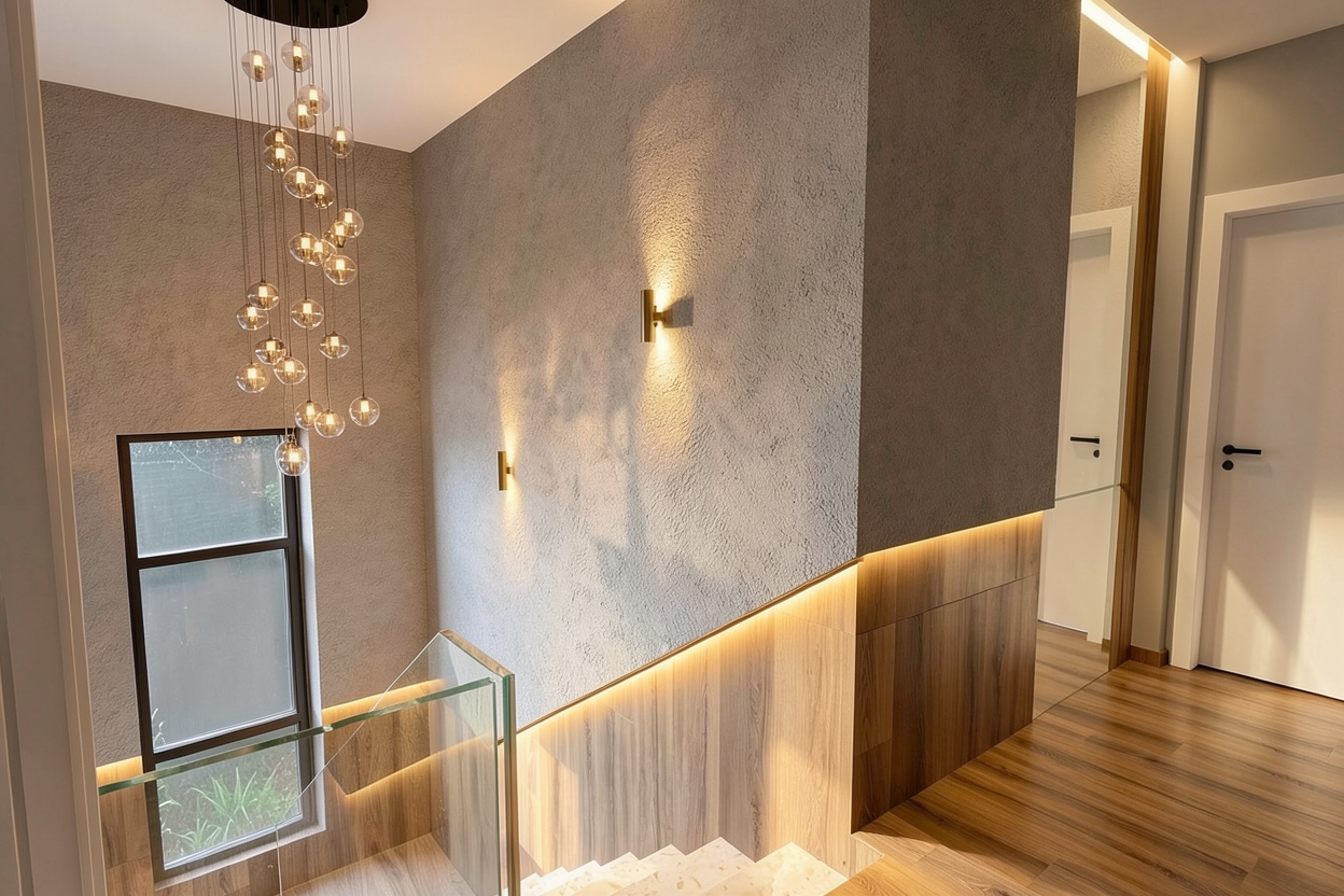 more natural tune outdoor shot less trees pavers to the front of the house make the upper vertical wood sidings wood color