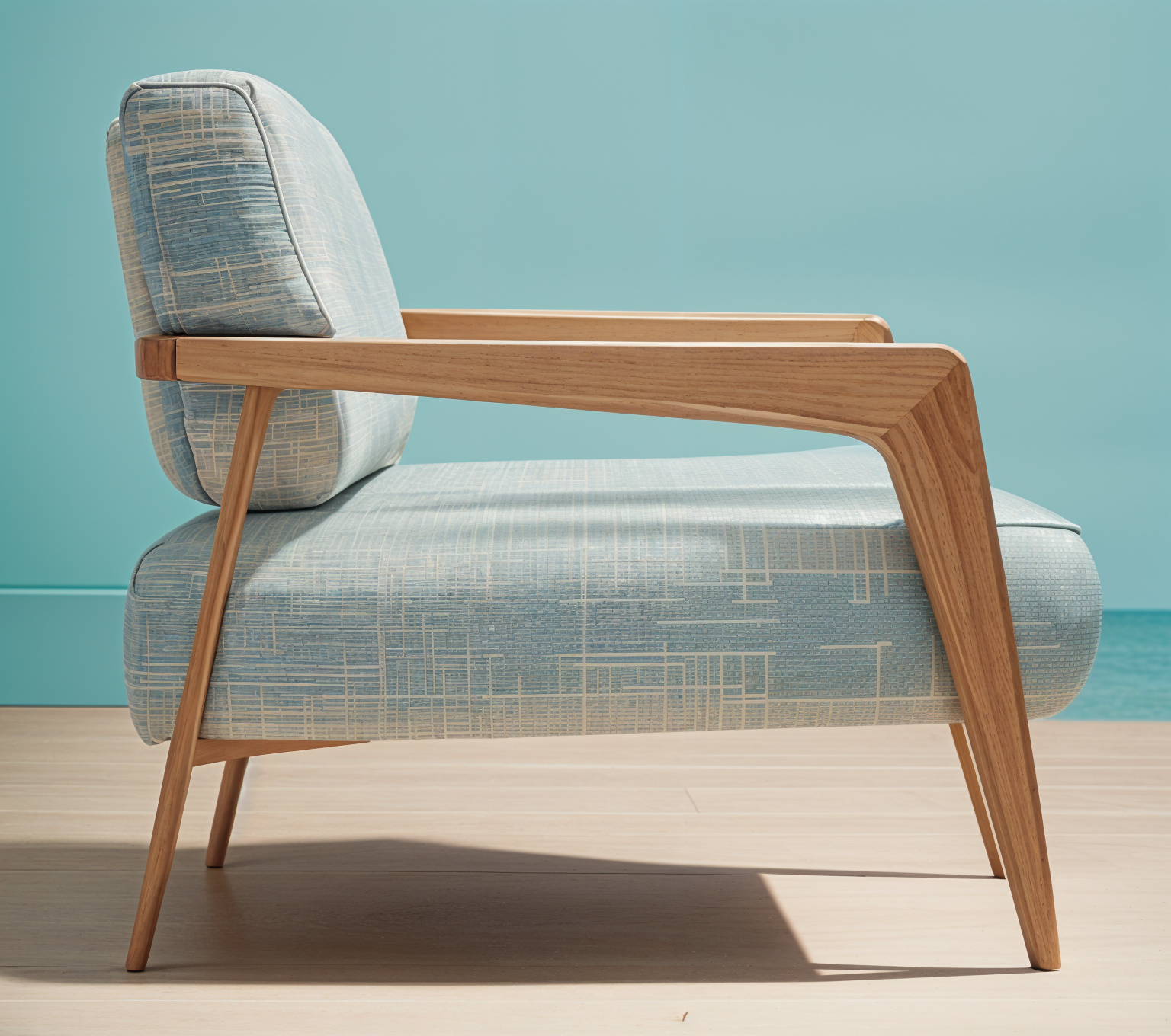 modernist weaving design arm chair upholstered seat and back wooden rattan legs finish architecture