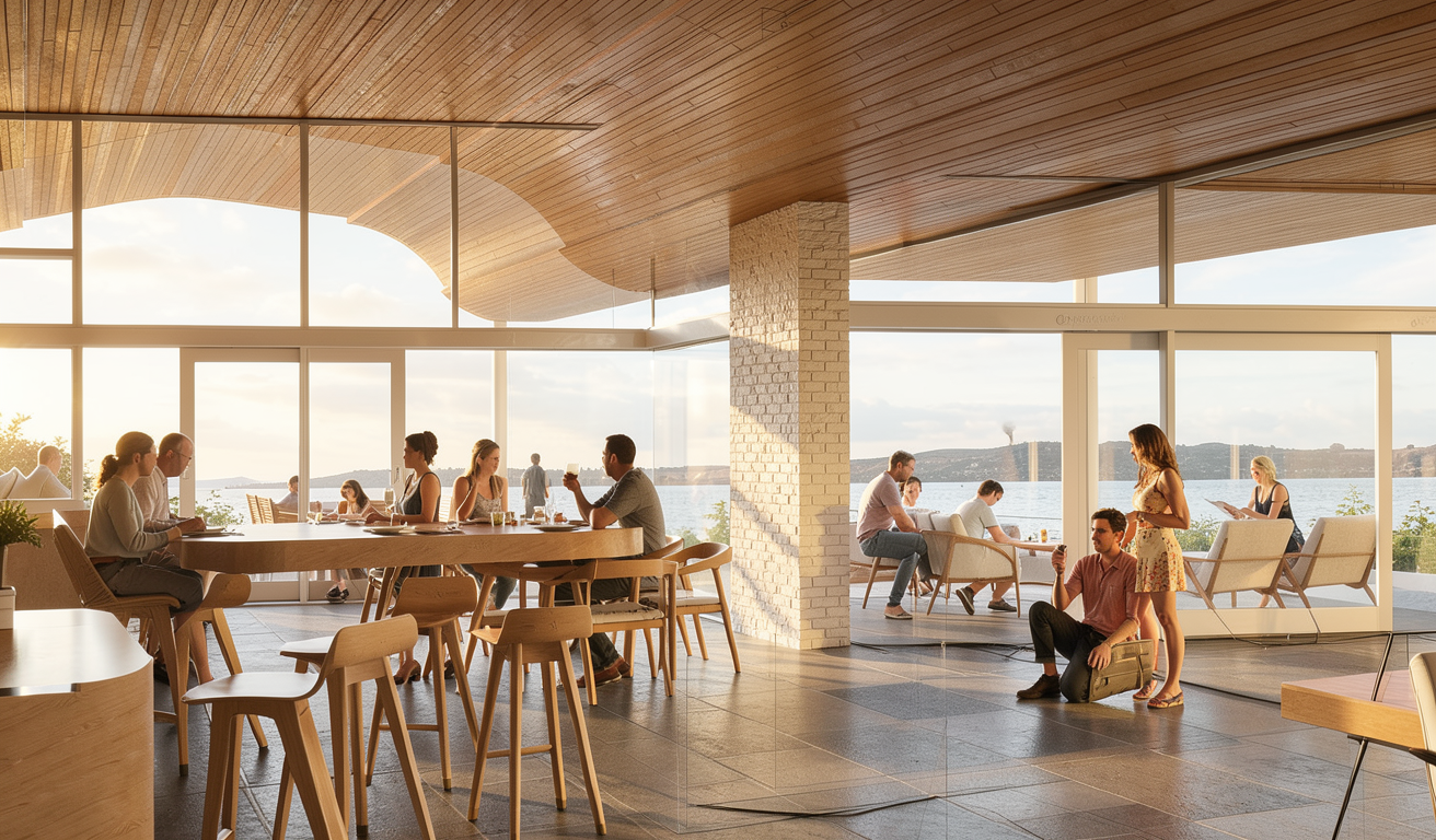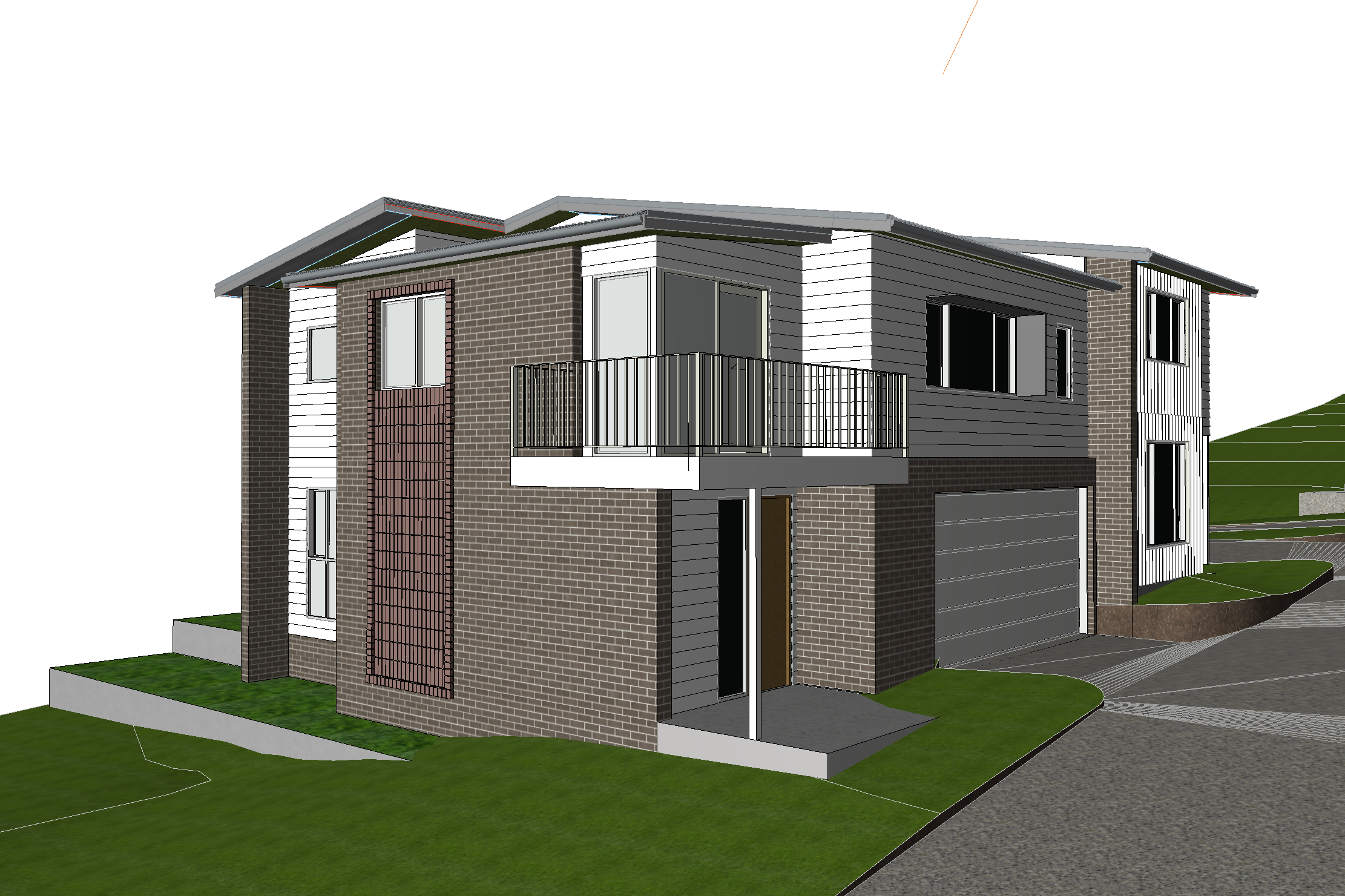 transform this archicad image into a high resolution render include landscaping a car and trees in the background