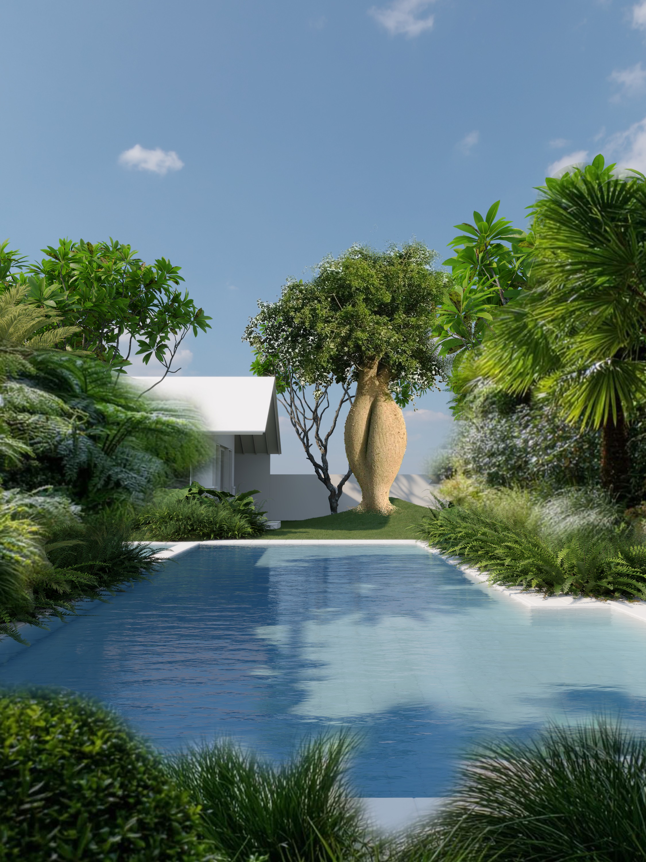 enhance the realistic texture and night lighting with psychedelic indirect light to the vegetation and trees set the camera apperture into f 35