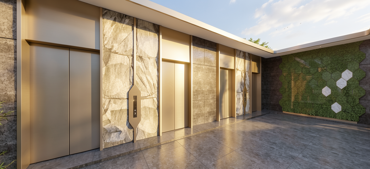 a modern exhibition hall business people walking and seating around the room modern concrete floor