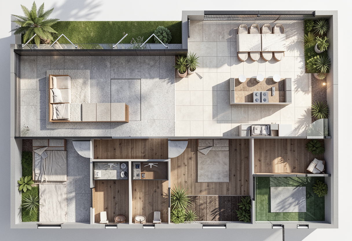 industrial home design matte black metal panels matte vertical shiplap exposed concrete foundations tall grass foreground fog trees in background sunlight on building face