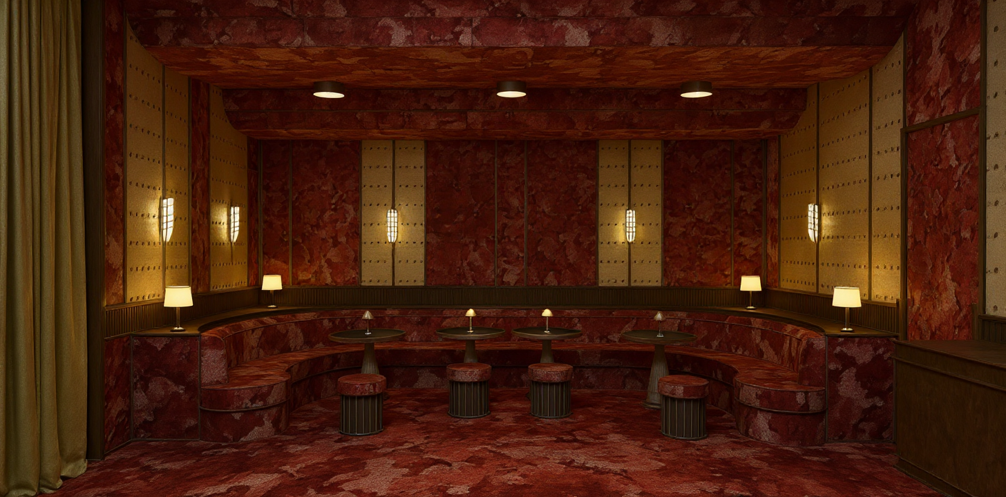 please change the color of red burgundy headbed panel with semi dark brown tone please keep the nero marquina side table just same as the render