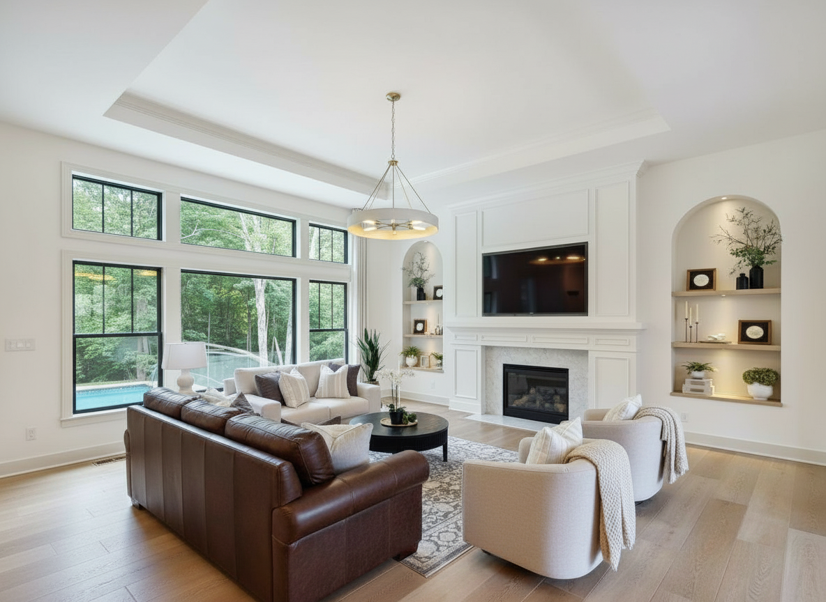 change the fireplace surround tile to fluted wood look tile