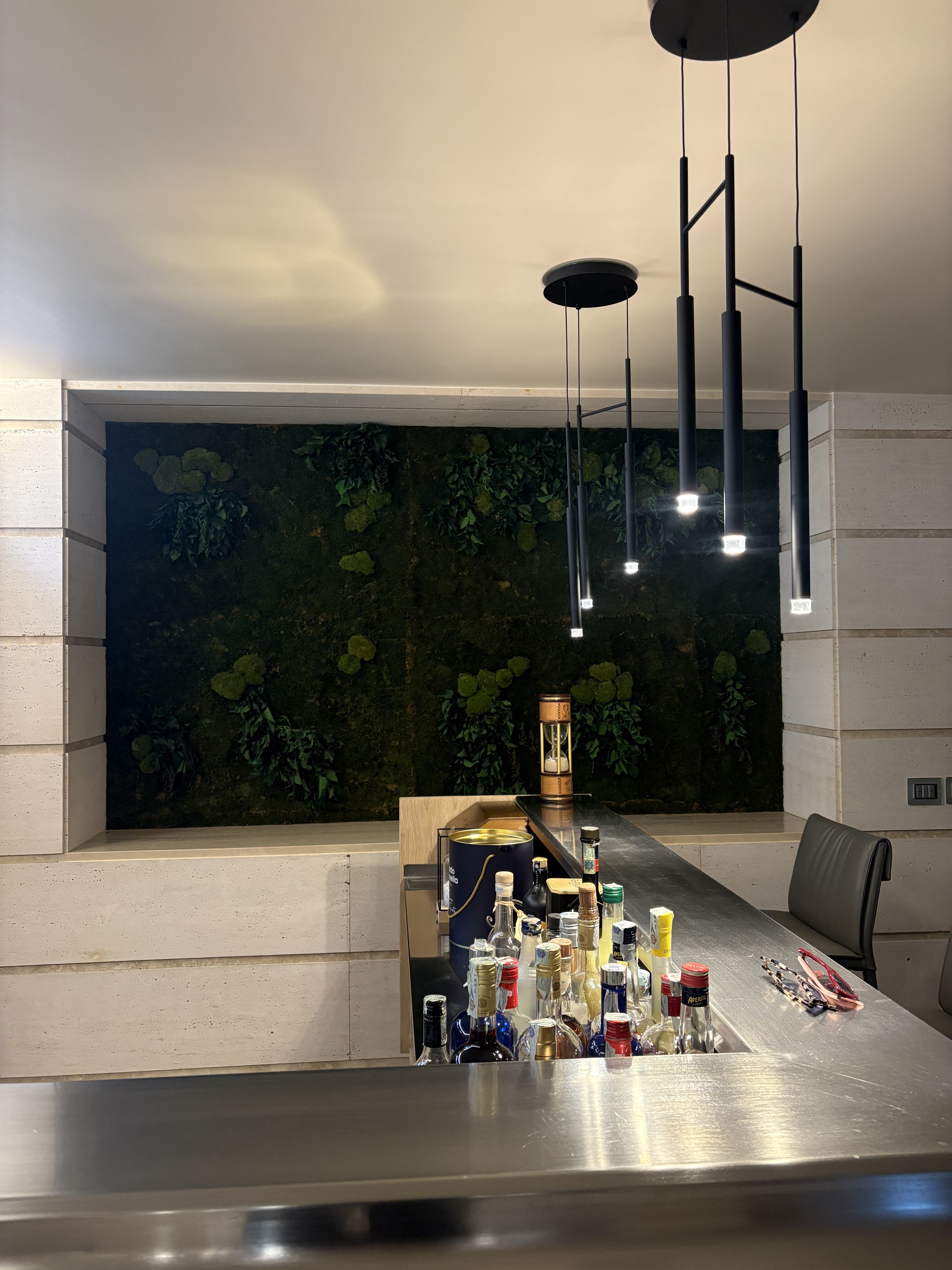 crea una boiserie contenitivo che riprenda il travertino del muro