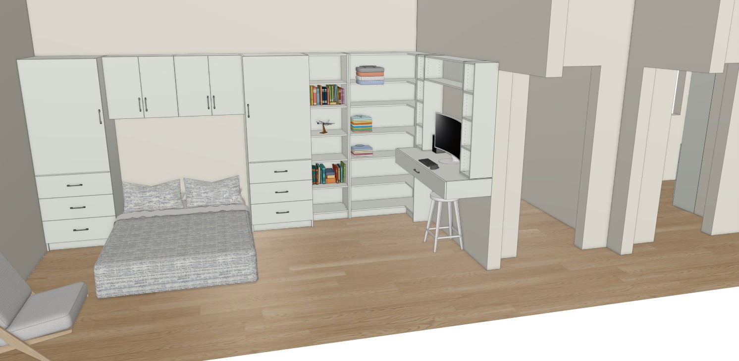 make this a light edwardian style room put doors on the shelves so it looks built in light from the left