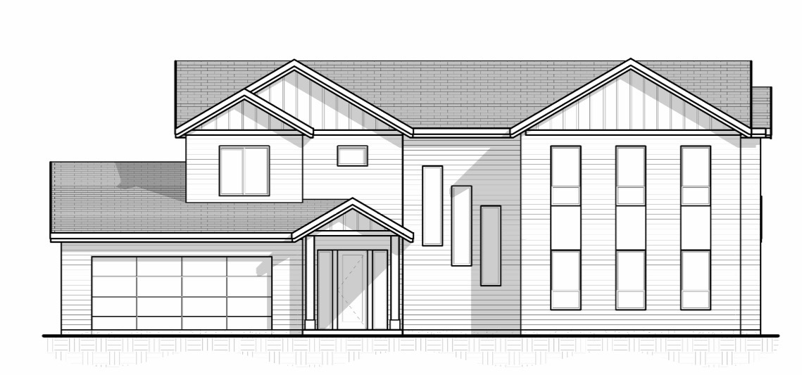 please remove all masonry and use the color benjamin moore westcott navy with white trim make the porch posts stained sw chestnut make the garage door a chi sonoma long panel