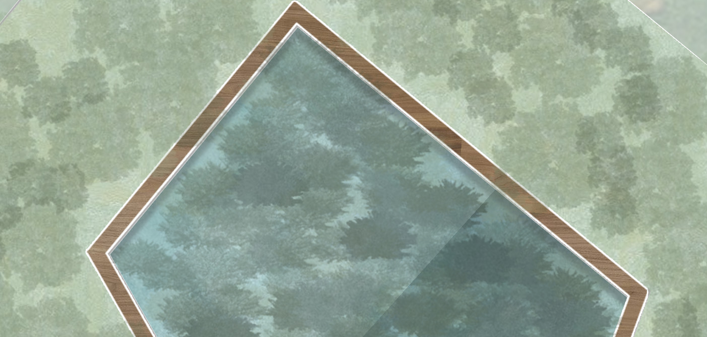 fai una vista render ad altezza uomo di questo raingarden aggiungendo dettagli come persone che camminano sulla passerella in legno parapetto che segue la passerella piante e molti alberi