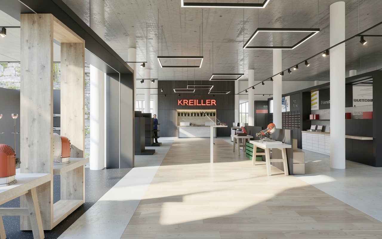 just a slightly more realistic rendering with natural daylight and interior lighting the ceiling is a concrete ceiling leave everything else and all the colours as they are