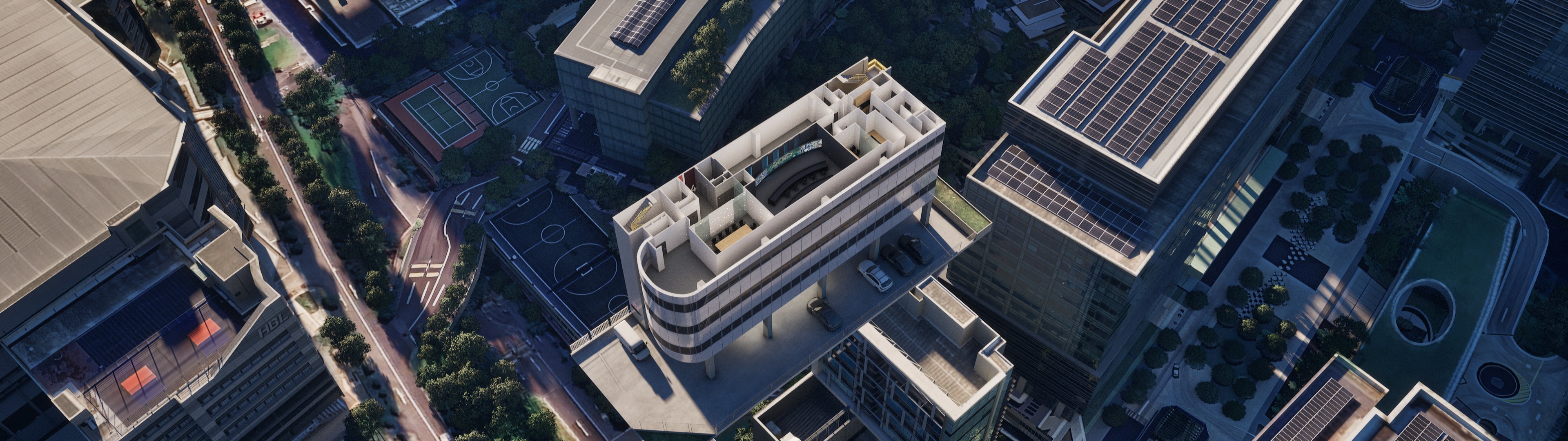 improve the global illumination photorealistic drone shot style