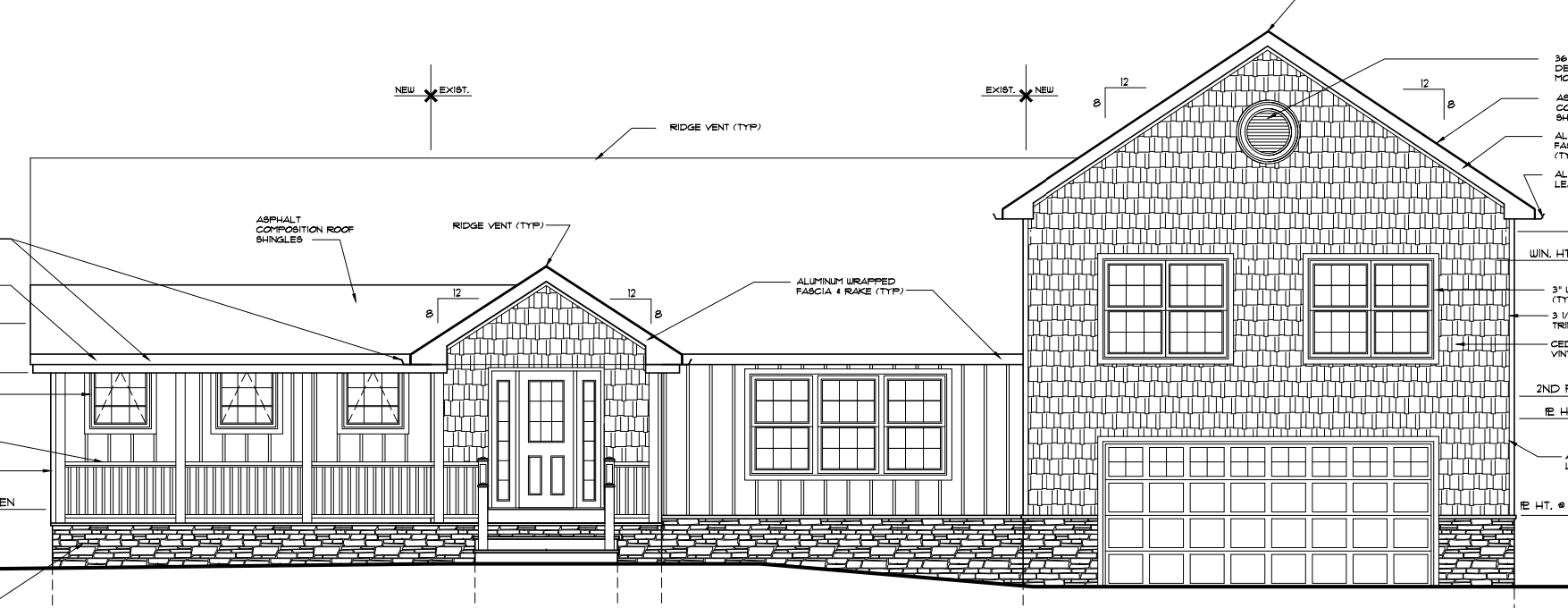 white cedar impression on most of the house and thin brick around front door a frame