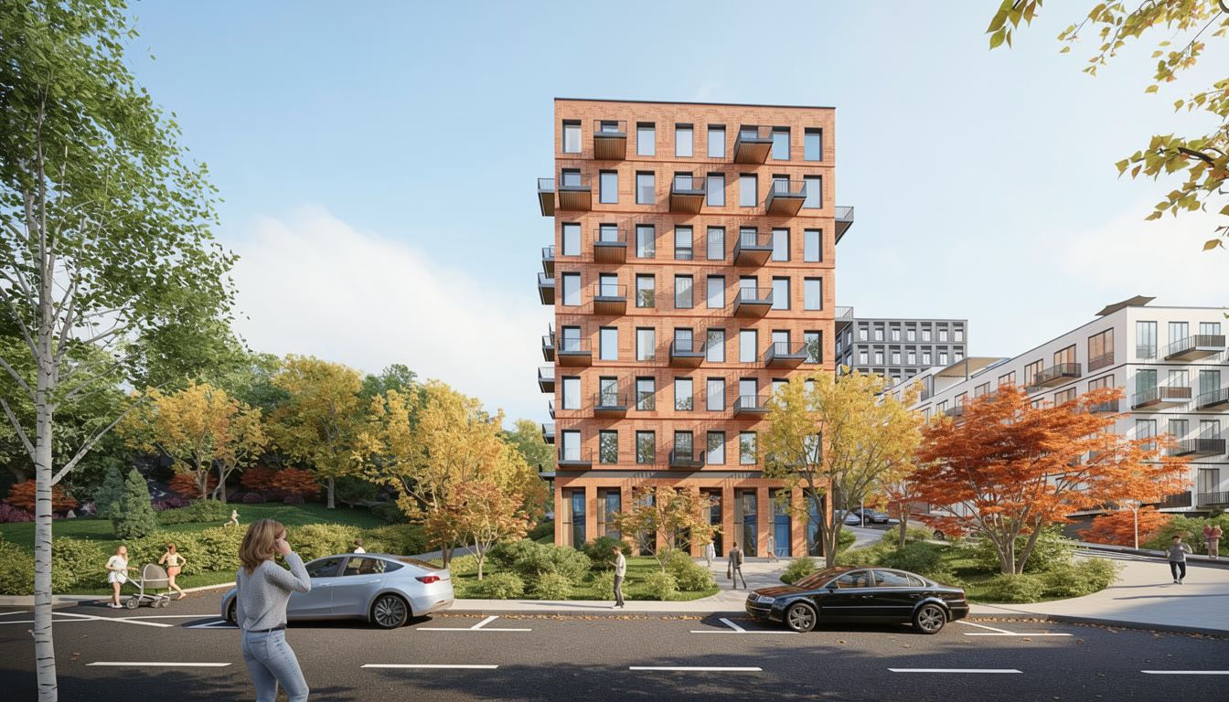 a geodesic dome with a coffee break area inside with elegantly dressed people drinking and chatting inside and outside the dome