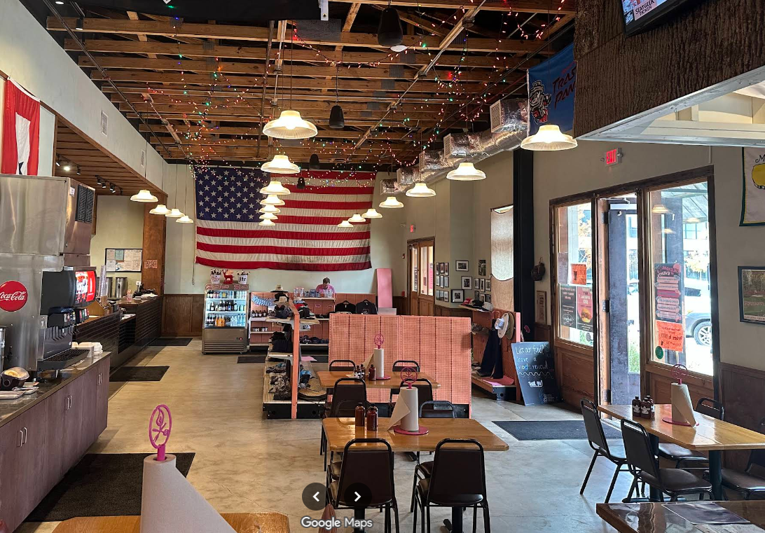 add a new bar under the american flag that serves draft beer and has bar stools in front of it