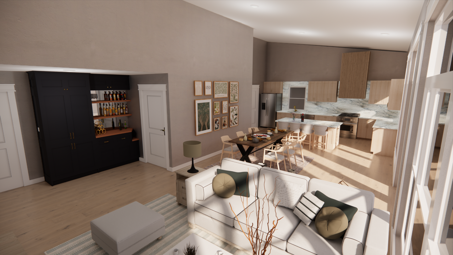 you are a professional image renderer you create the highest grade renderings around and specialize in architectural renderings this is living room create a high resolution photorealistic image of this structure keep the windows as they are where they are keep the doors as they are where they are keep the main structure as it is where it is feel free to change the perspective do not add anything to the structure that i have not asked for the style is organic modern