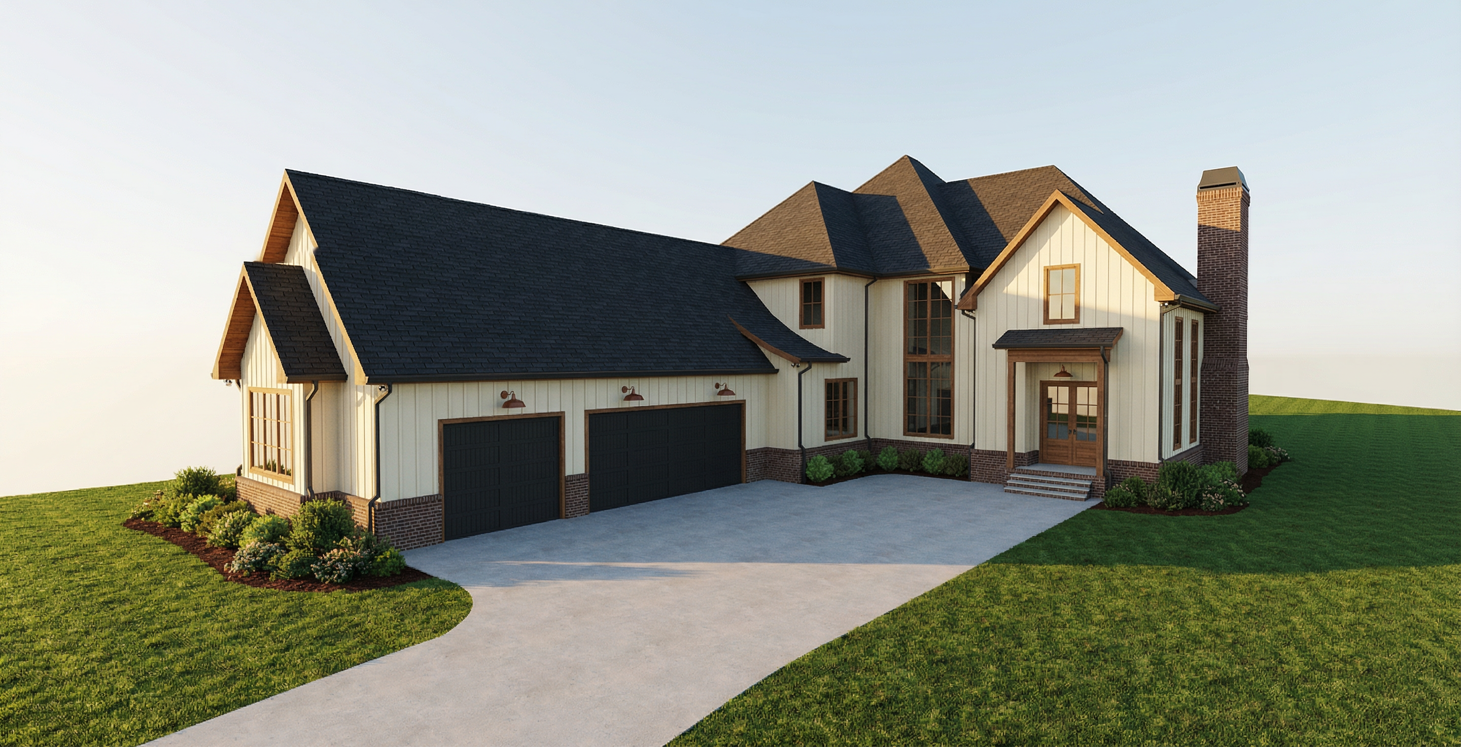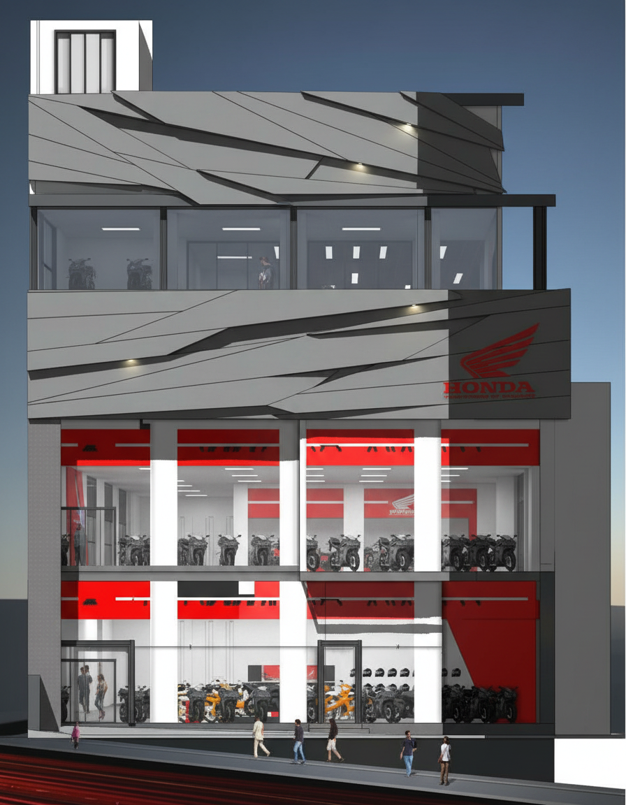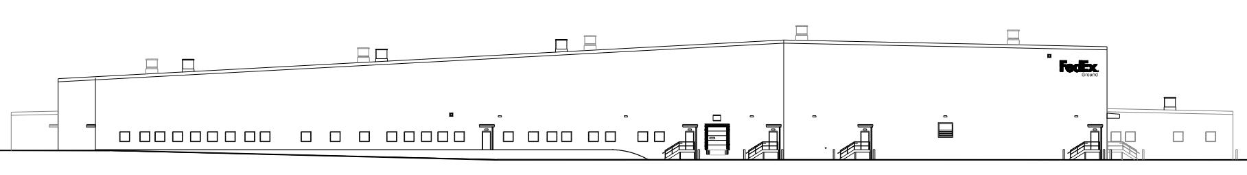 create a rendered color elevation for this industrial warehouse
