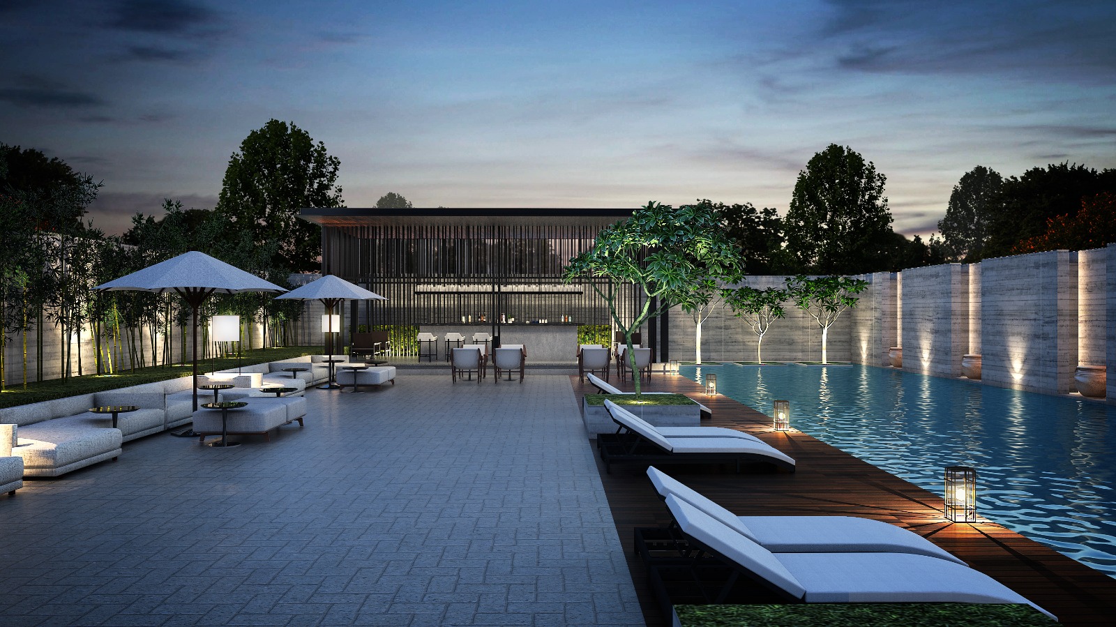 please generate a highly photorealistic exterior rendering of the provided nepal resort architectural model core requirement critical strictly preserve all architectural geometry proportions and design intent do not alter reinterpret or redesign the architecture maintain all building forms roof profiles structural elements spatial relationships the architecture must remain faithful to the original design architectural character the project is a nepal resort style development emphasise natural materials integration with landscape relaxed resort atmosphere materiality render all materials with high realism and natural texture timber warm tones visible grain stone textured slightly rough grounded plaster subtle imperfections not overly smooth metal soft reflections avoid overly polished or artificial finishes slight weathering is acceptable for authenticity lighting very important use natural daylight only morning or late afternoon preferred lighting should be soft and balanced not too dark not overexposed emphasise natural shadows depth of architecture warmth of materials landscape scenery enhancement allowed you may enhance the environment with lush greenery tropical mountain planting natural terrain background can include mountains distant hills subtle mist or atmospheric depth landscape should support and frame the architecture not overpower or obscure it composition clean architectural framing show full building clearly within its context include foreground midground and background for depth atmosphere calm luxurious resort like natural breathable and connected to the environment rendering quality ultra high resolution fully photorealistic no stylisation or cartoon effect output should resemble professional architectural photography goal produce a beautiful realistic exterior image that communicates the architecture clearly enhances the natural setting subtly presents the resort as refined and high end