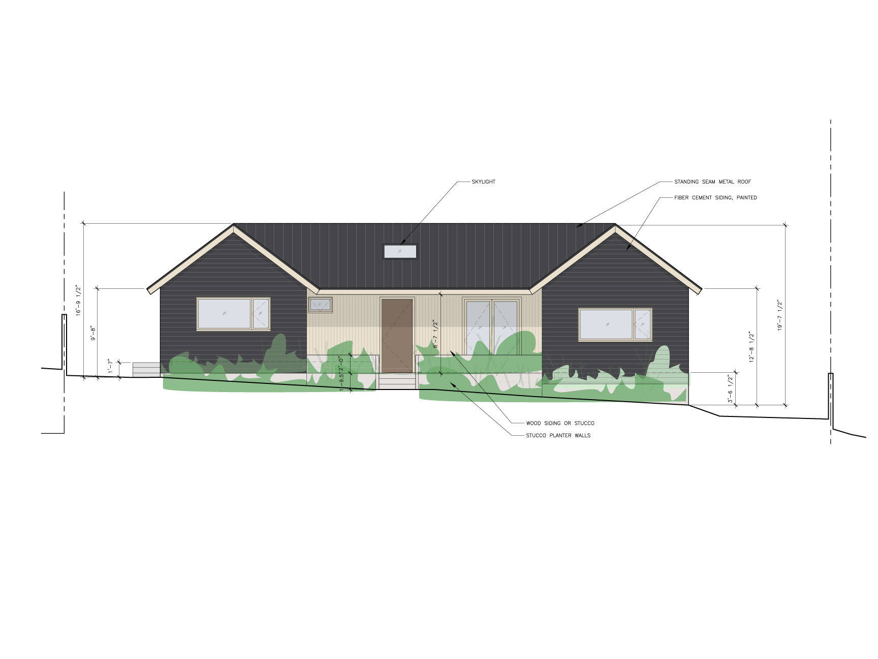 modern house in southern california neighborhood with oak trees and california native plants and flowers in the front yard