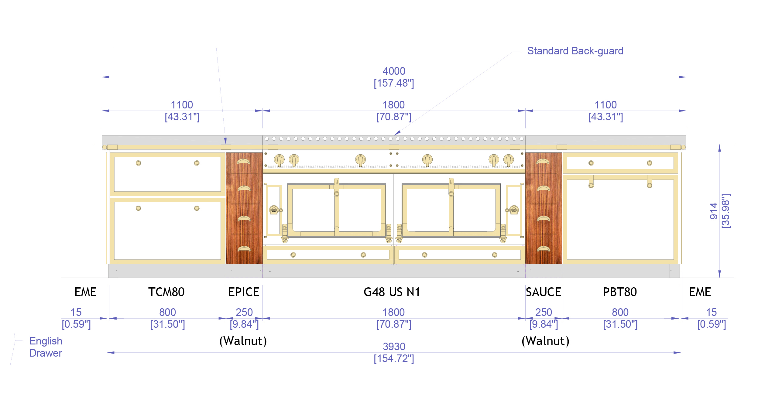 render the range front facing no background on white with slight shadowing maintaining colors of both the range trim and cabinetry