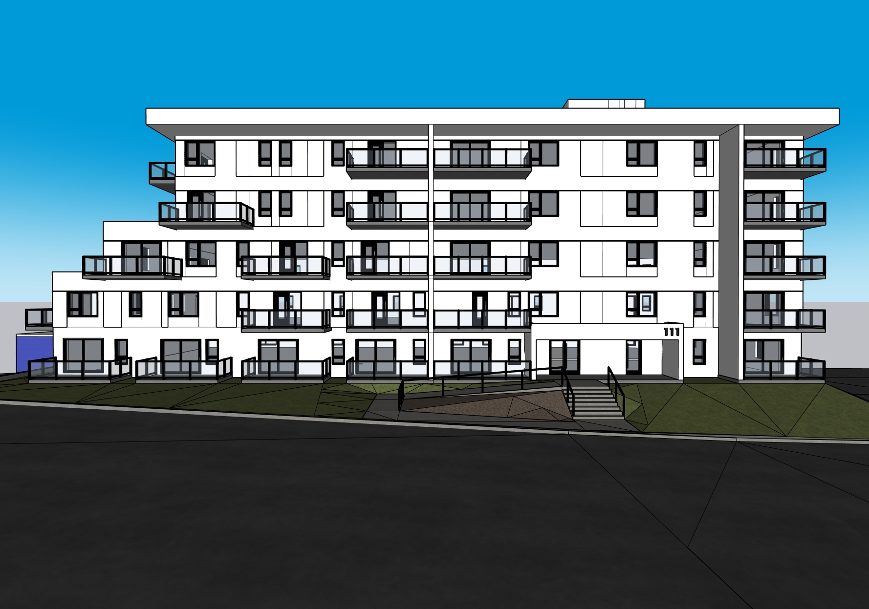 i need inspiration for the facade cladding i want a realistic look with trees and people something modern and timeless keep windows as they are