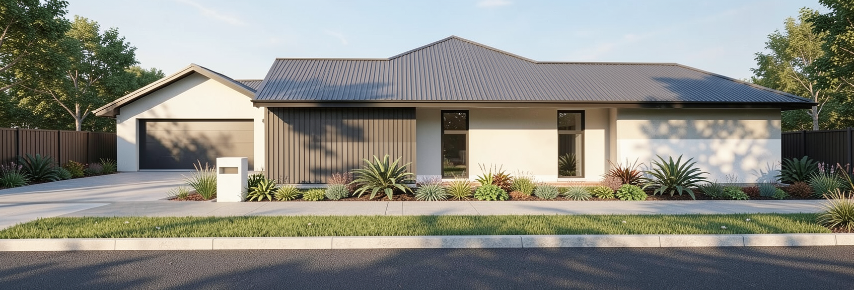 photorealistic rendering of a elegant french home doric style columns tuscan style render facade symmetric design colonial windows golden hour lighting green hedge fence high resolution 4k octane render remove people
