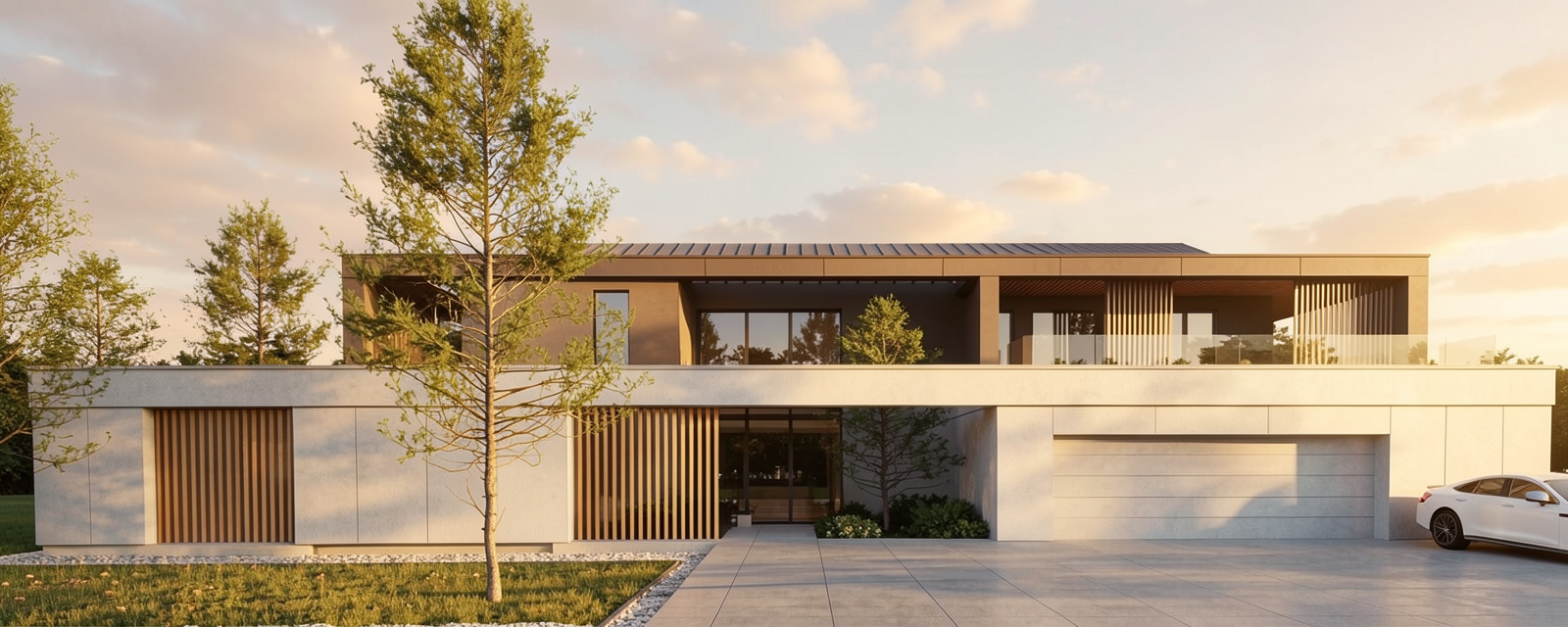 a modern stylish atrium with sleek architectural design the atmosphere is welcoming and professional with abundant natural light use cool neutral colors for the walls and floors like soft grays and whites the desk should be sleek with a dark marble top adding elegance incorporate lush green plants for a touch of nature the glass windows are polished and reflective contrasting with matte black frames the ceiling is minimalistic blending in with light fixtures the furniture is contemporary with rich brown tones enhancing the sophisticated vibe