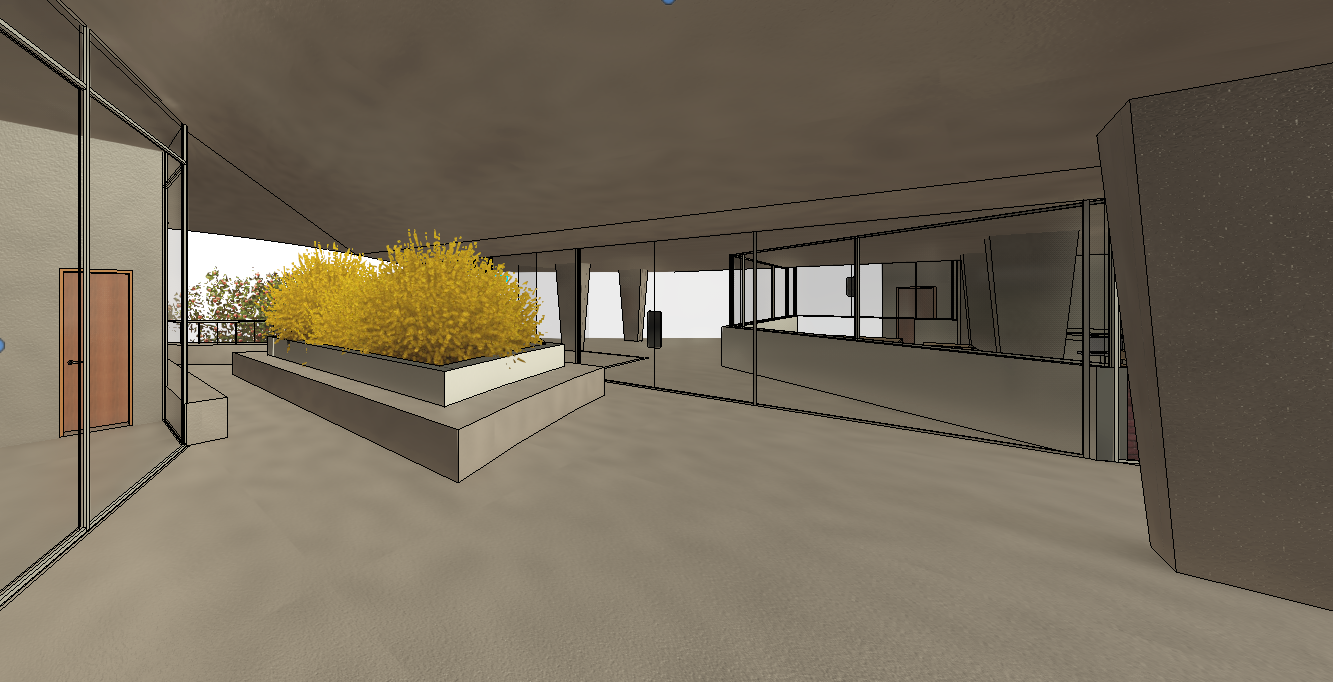 wide angle shot create a stunning architectural rendering of a modern building with a lush green rooftop garden incorporating vibrant greenery and cascading vines use earth tones for the building exterior with hints of slate gray for the windows and structural elements the atmosphere should be serene and inviting with soft diffused natural light and a touch of warmth to highlight the greenery include surrounding trees with rich green foliage and a subtle blue sky in the background to enhance the tranquil setting