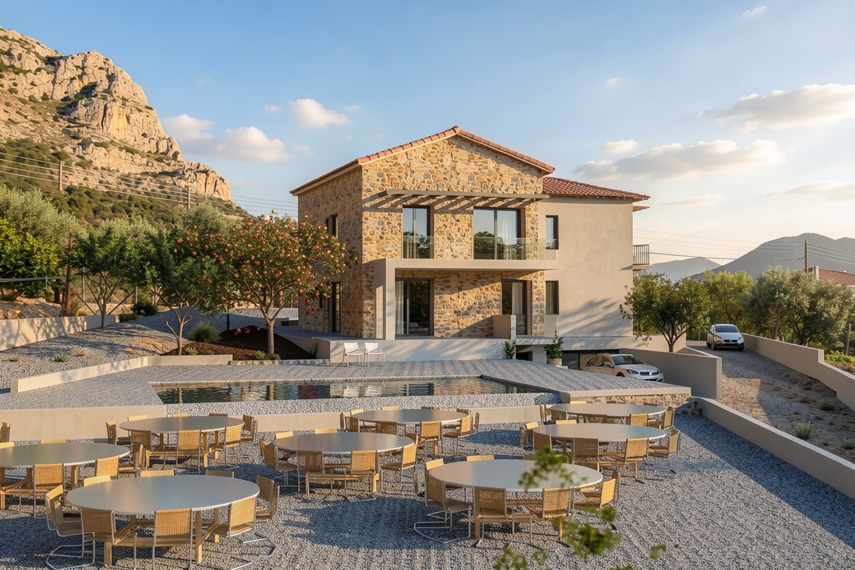 exterior shot wardrobe structure hemp desert alternating doors agave powder blue open elements light wood wall warm neutral tint or sand glaze