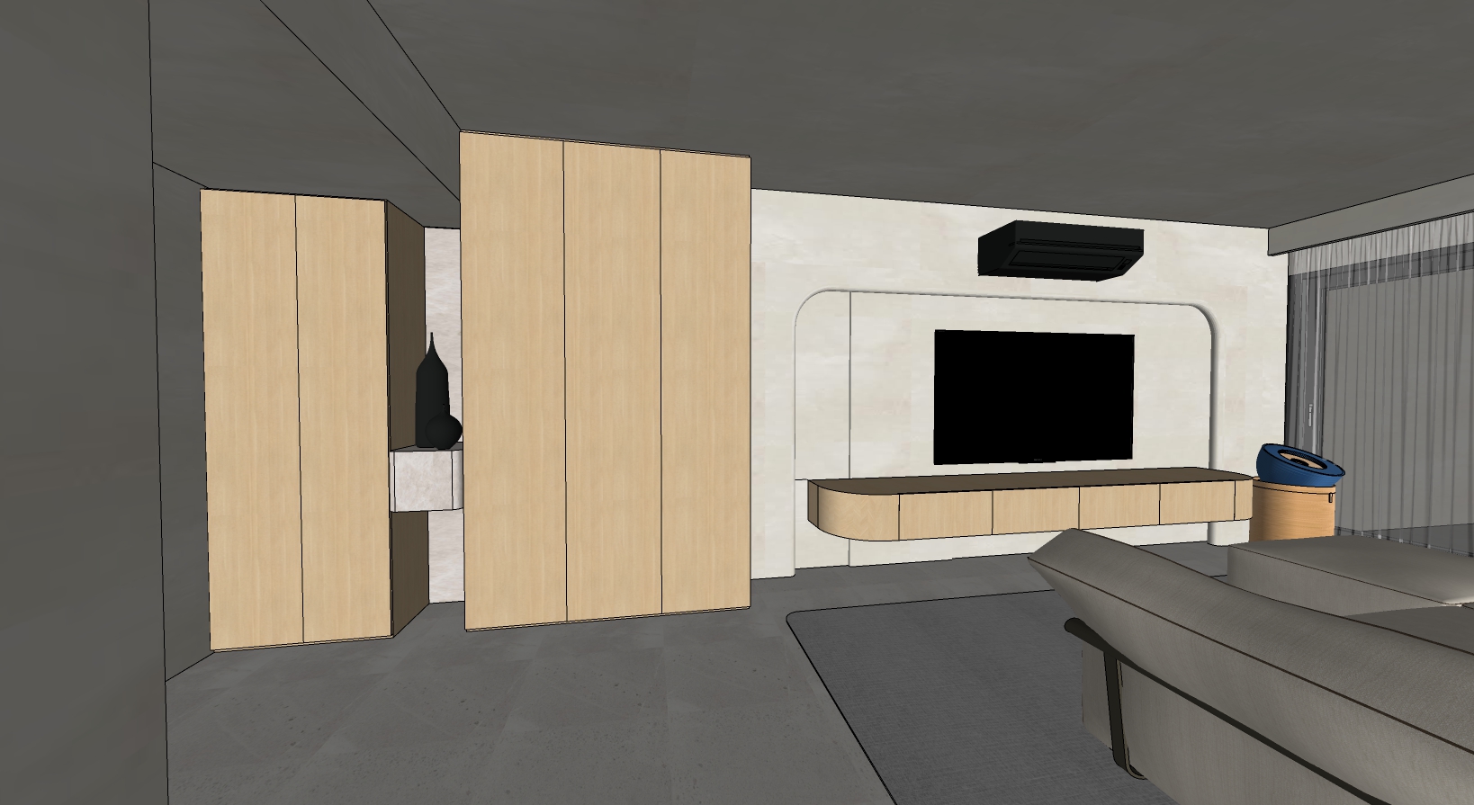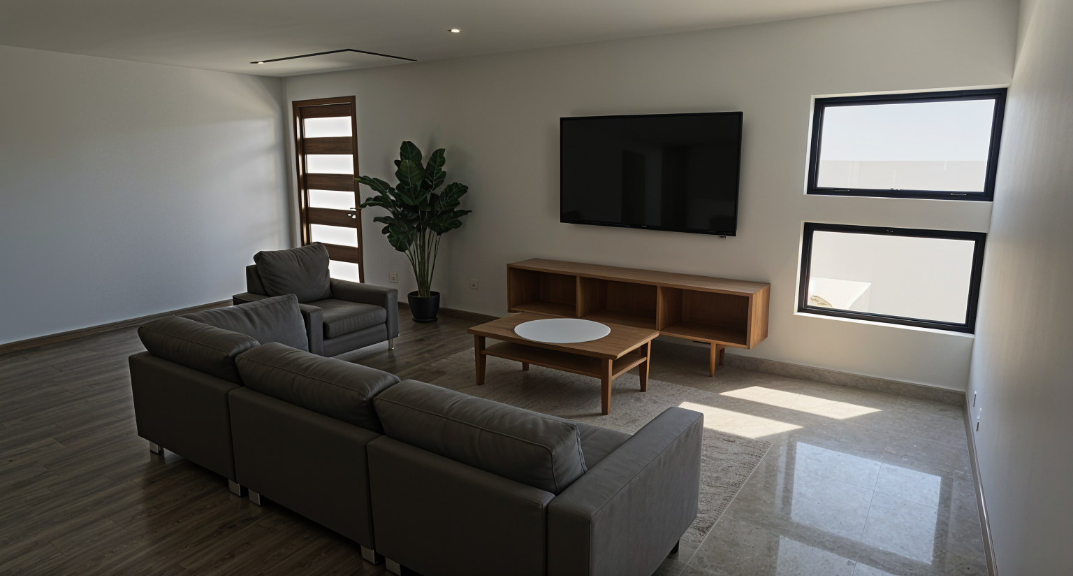 render this image in a realistic style maintaining the exact same composition furnishings and design without adding or removing elements