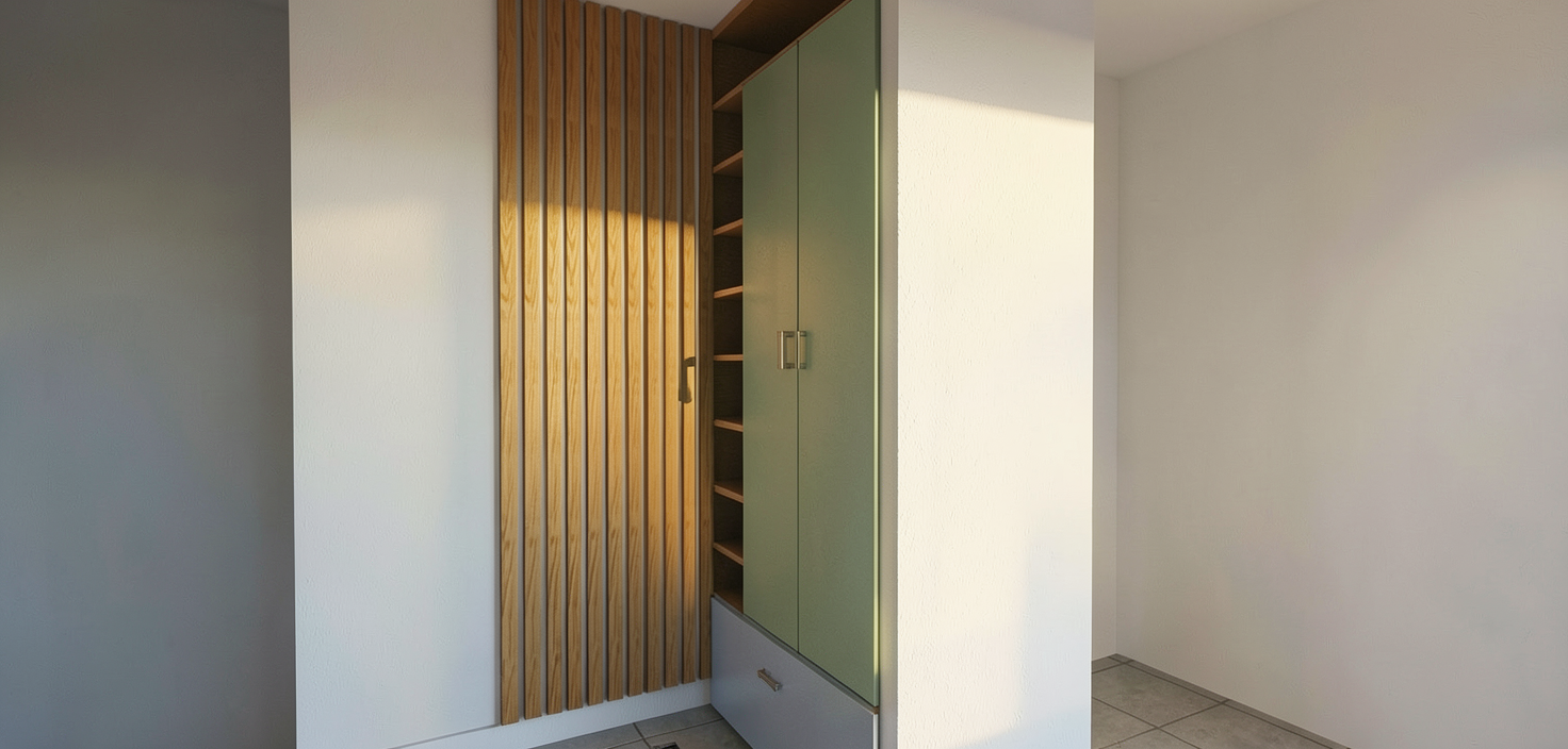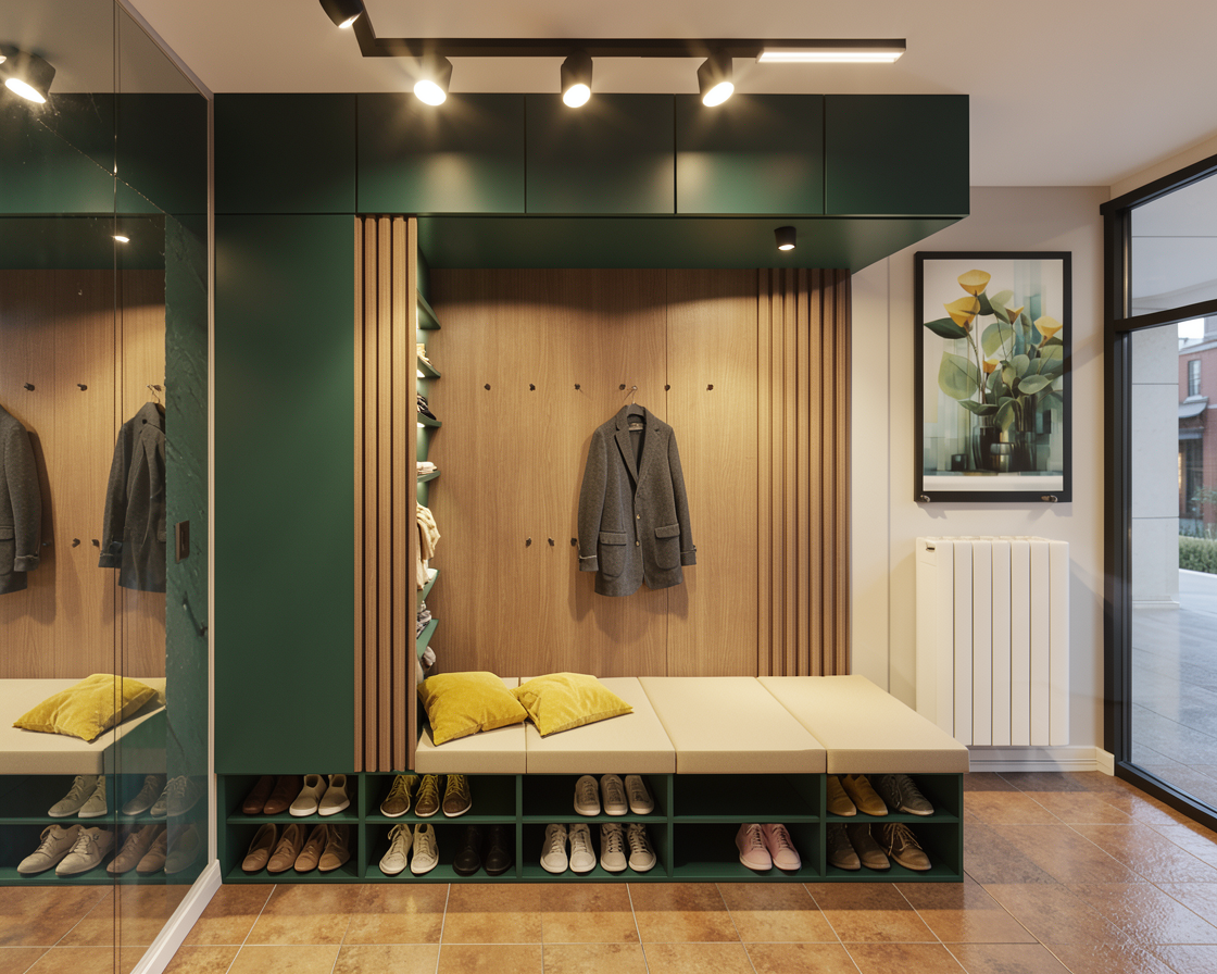 keep the image but make it better it s a closed space there s no natural light keep the same materials from the image