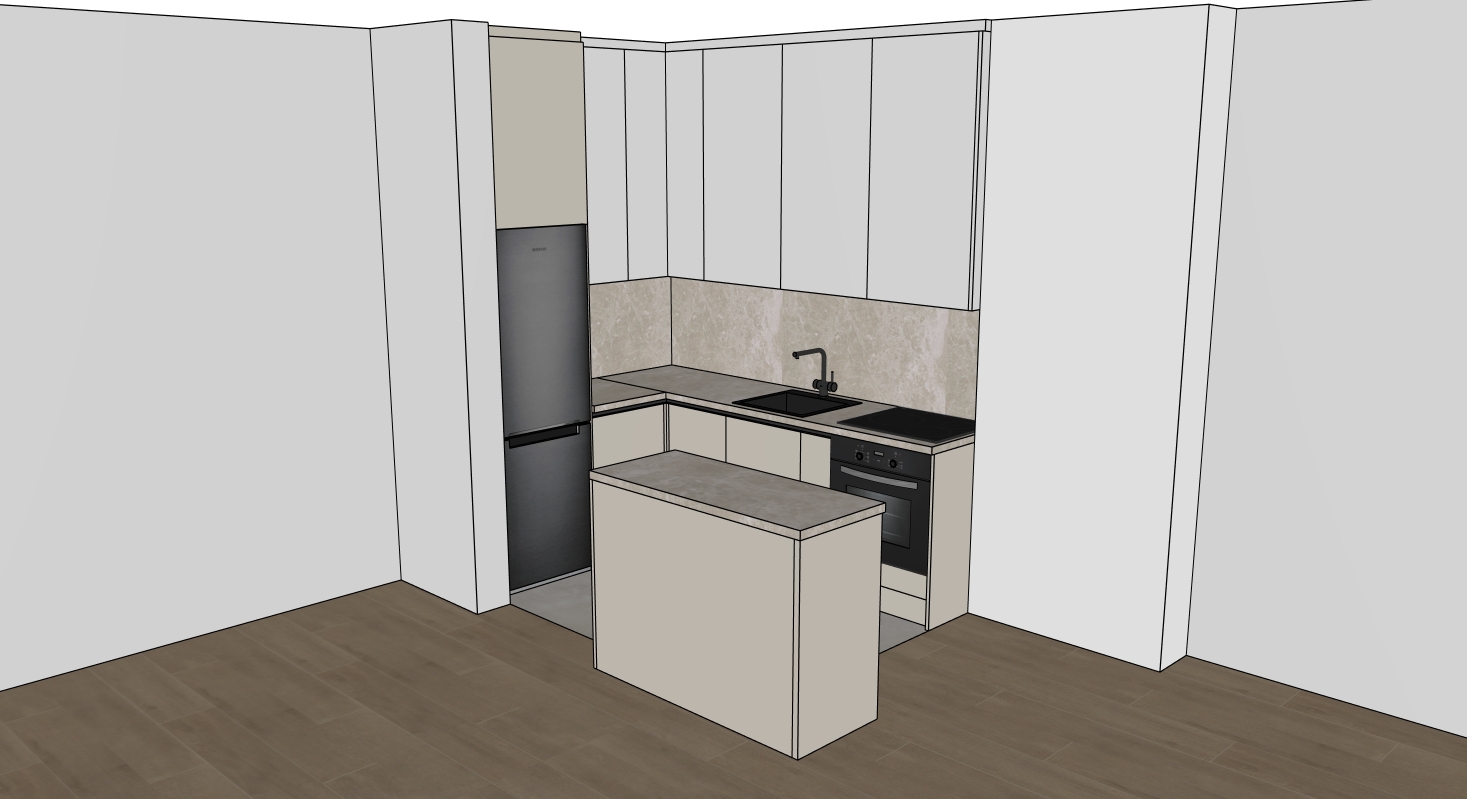 interior shot dovn elements in chashmire color and top elements in white put lights under top elements