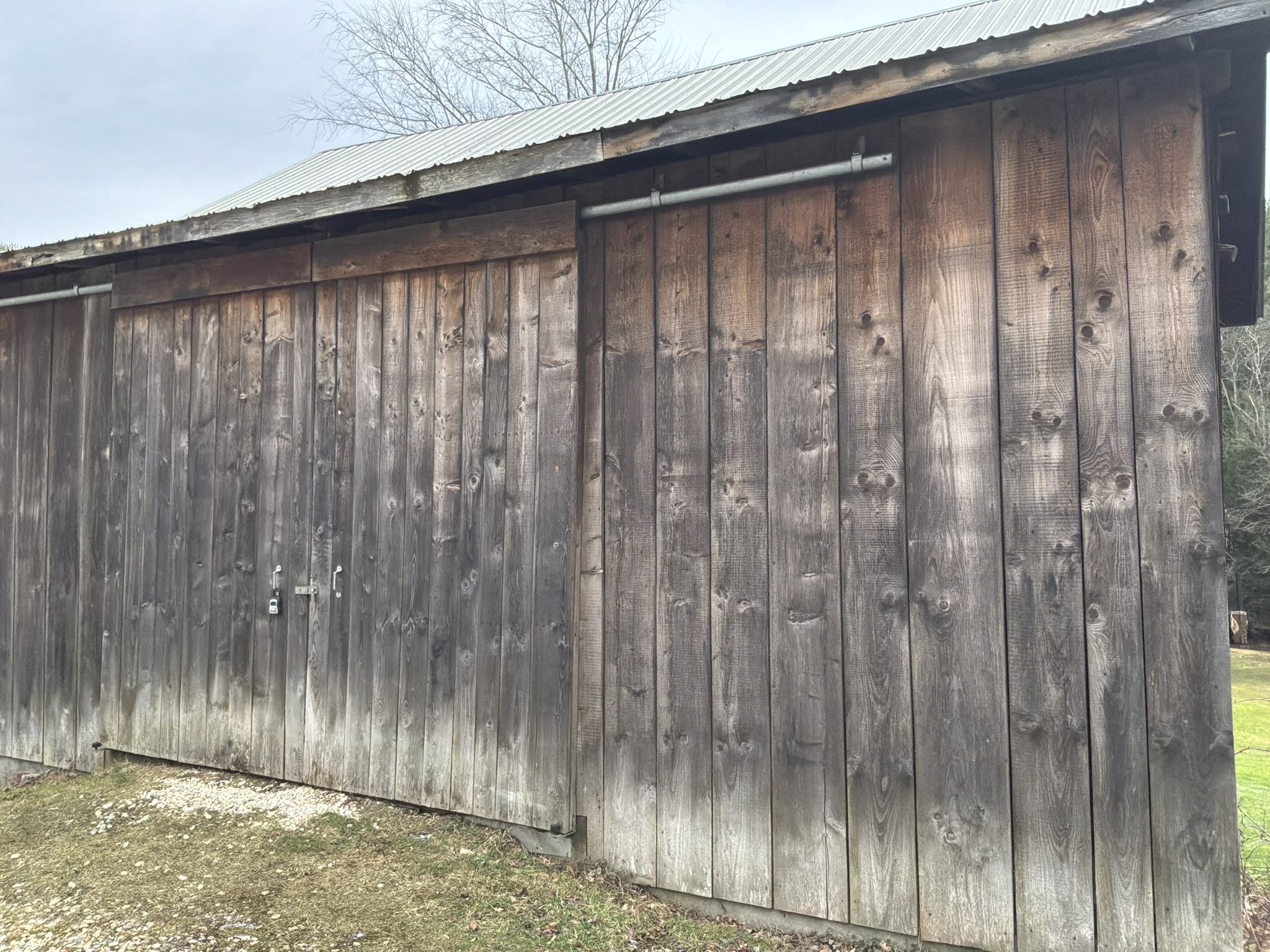 white window trims large timber frame aesthetics add a cupola and some landscaping make realistic make siding board and batten pine move cupola to peak of roof line driveway along front of house off the porch 2 car garage on left side this is an old bank barn we are converting to a residence a