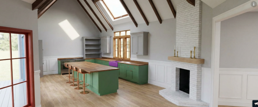 remove skylight remove arch over the kitchen window change wall color to a soft white